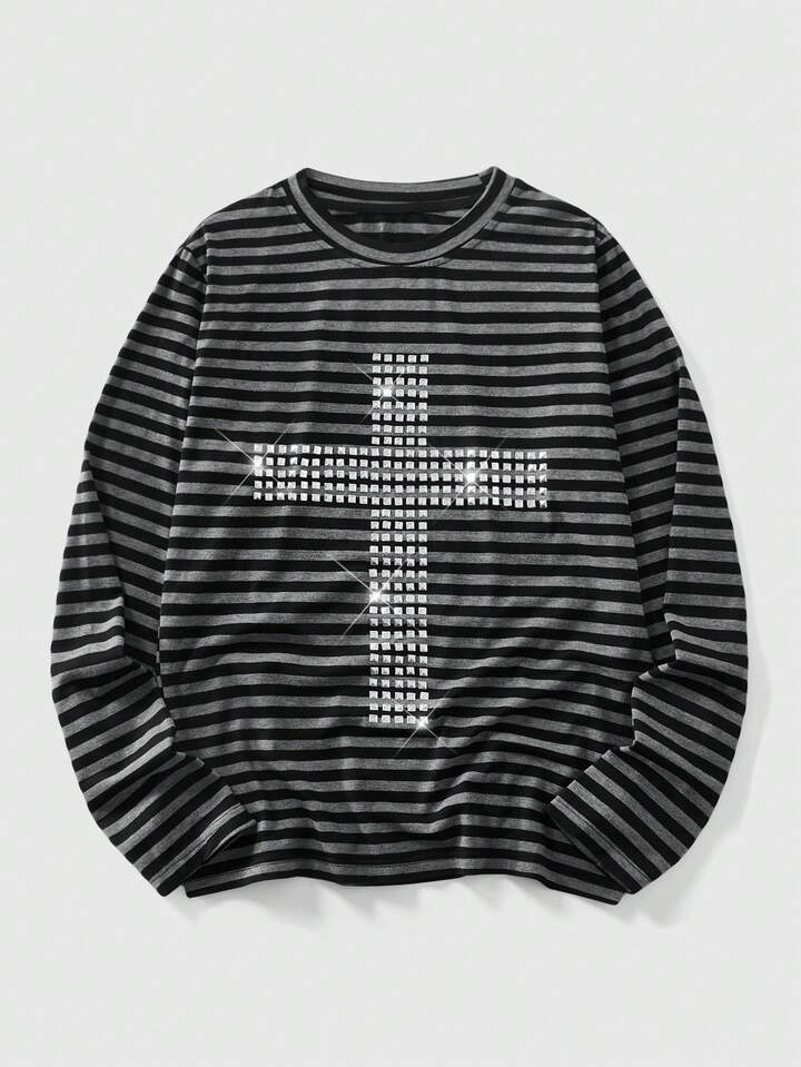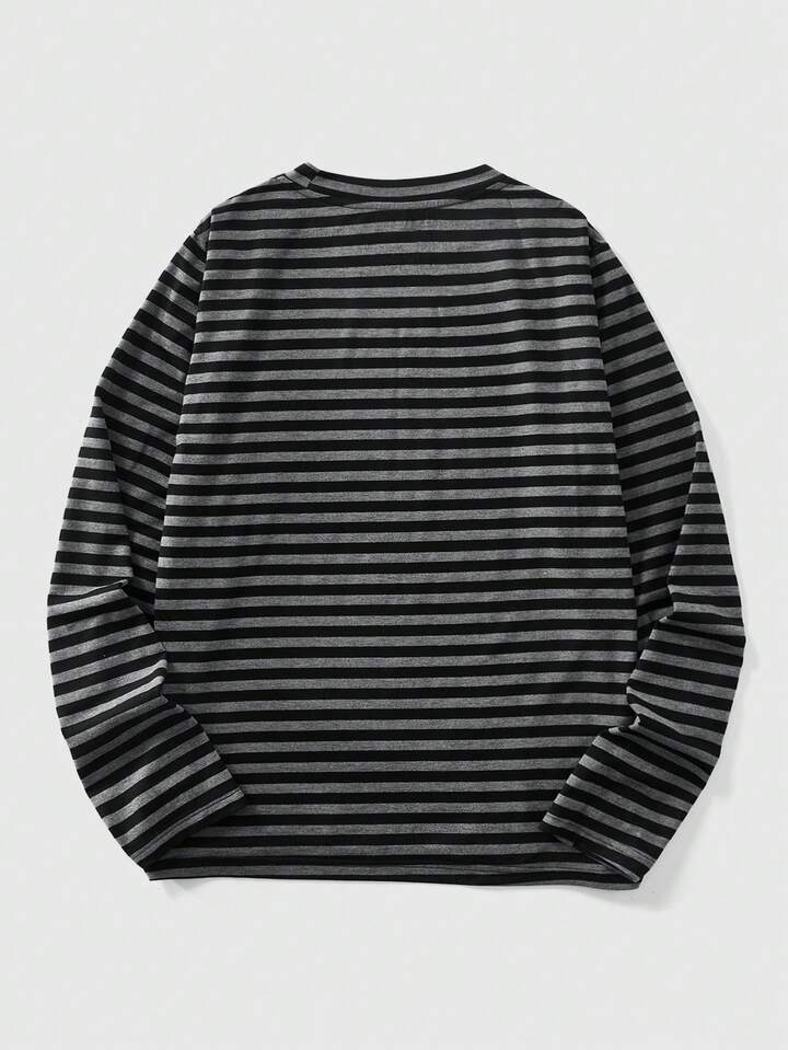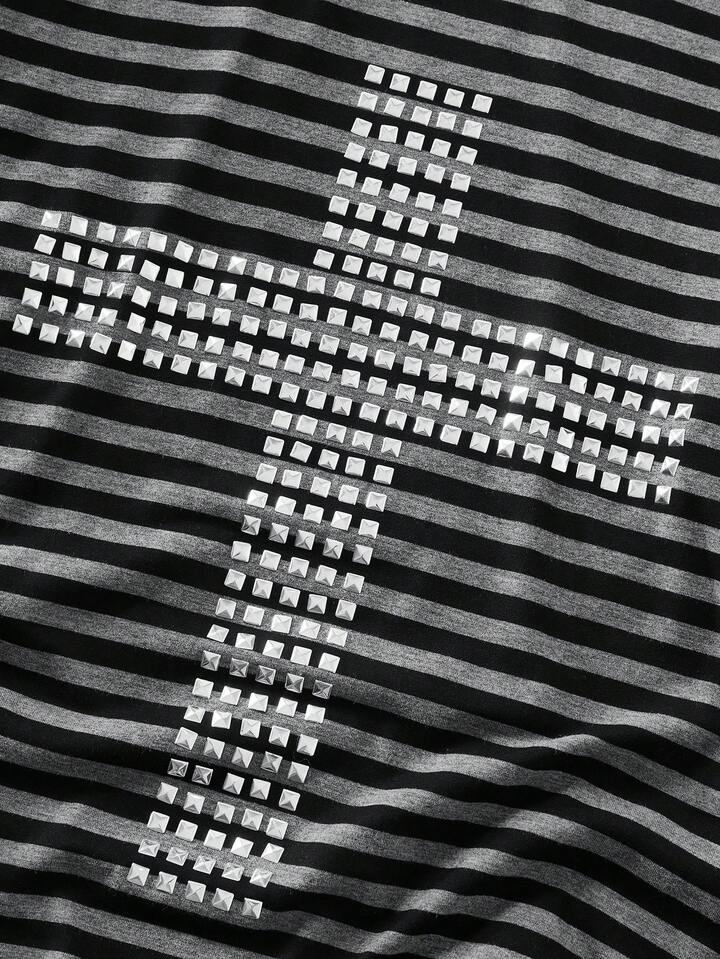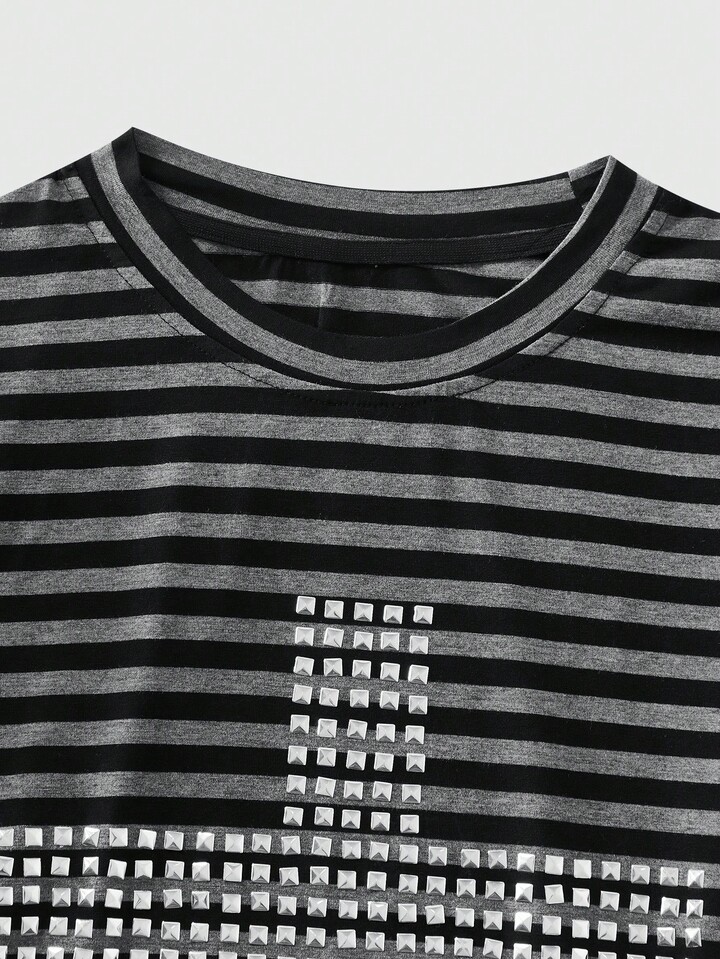 Street Life Maglietta a maniche lunghe da uomo a righe con rivetti e vestibilità slim