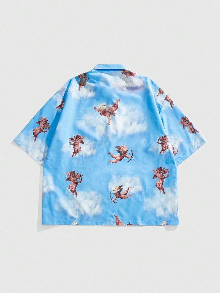 Street Life Camicia casual estiva da uomo con stampa di angeli