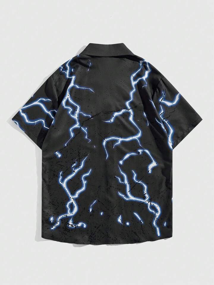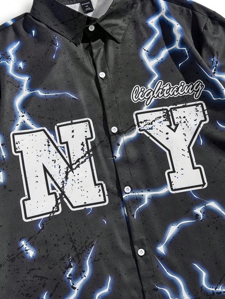 Street Life Camicia casual estiva da uomo a maniche corte con stampa di lettere e fulmini