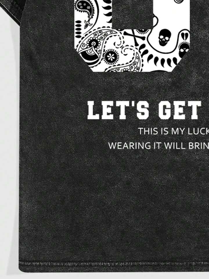 Street Life Maglietta casual estiva da uomo con stampa di slogan e football froissé