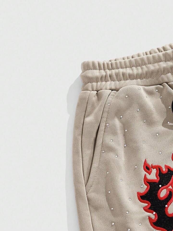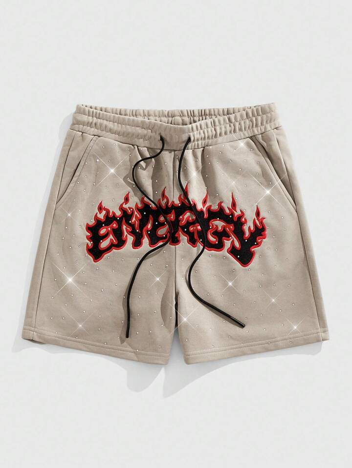 Street Life Pantaloncini casual estivi da uomo con ricamo di strass scintillanti