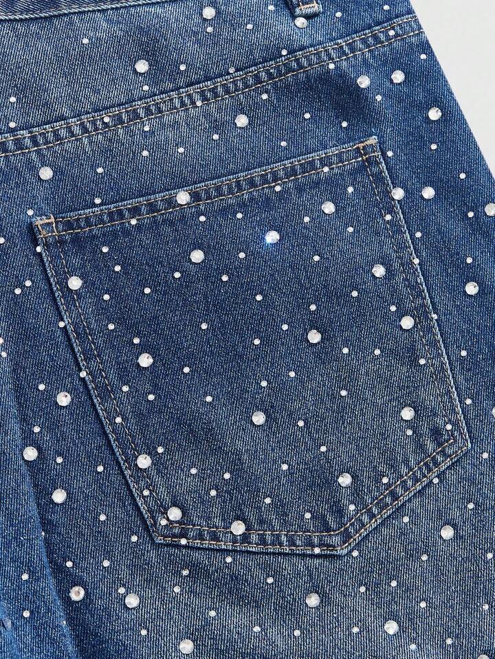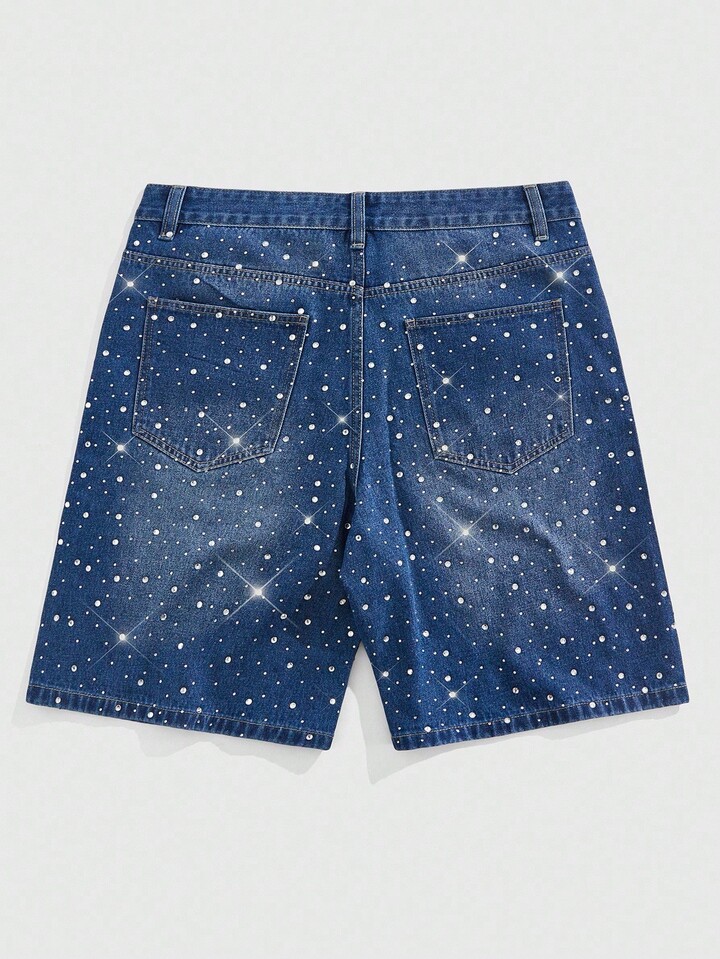 Street Life Pantaloncini di jeans da uomo estivi alla moda con tasche oblique e grafica con lettere e strass
