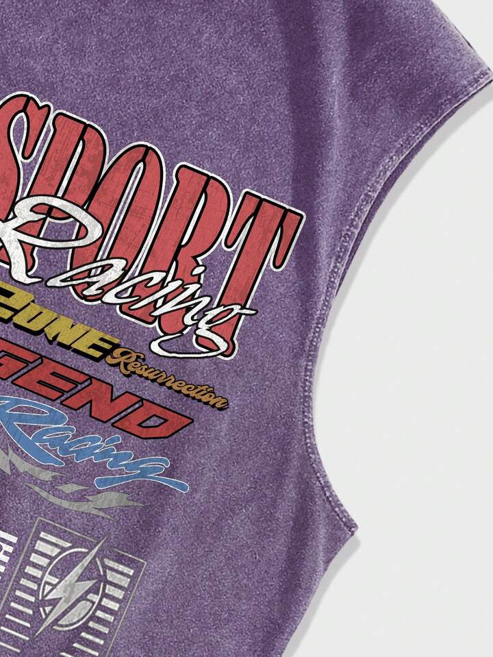 Street Life Canotta casual da uomo estiva con stampa di lettere e collo tondo, scuola