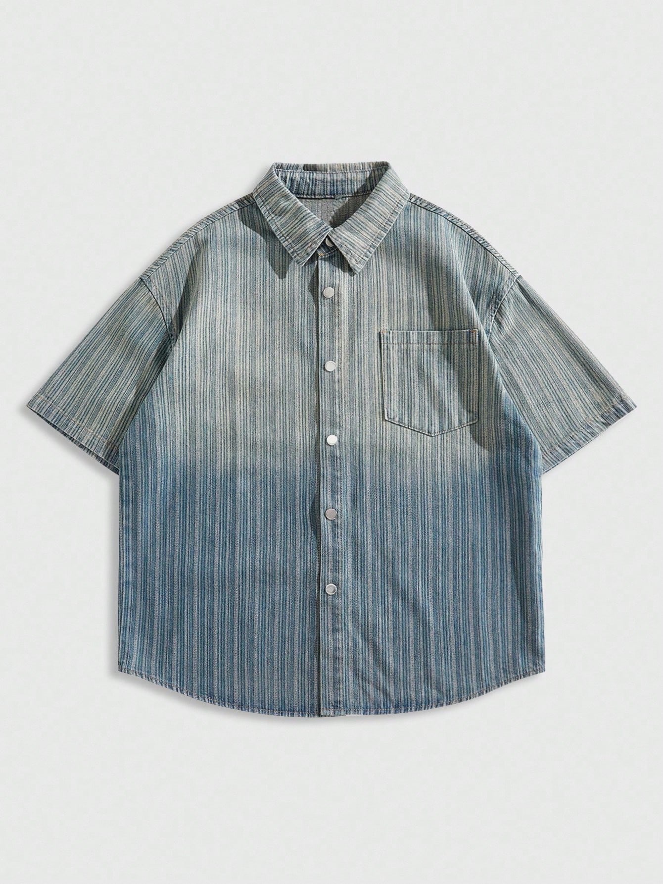 Street Life Camicia di jeans casual da uomo a manica corta, monopetto, con tasche