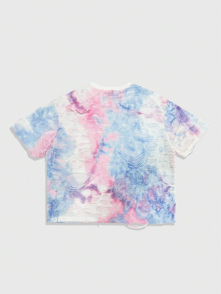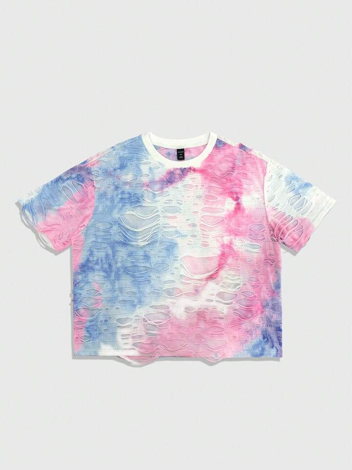 Street Life Maglietta casual a maniche corte da uomo con stampa Tintura a nodi e orli sfilacciati, adatta per l'estate