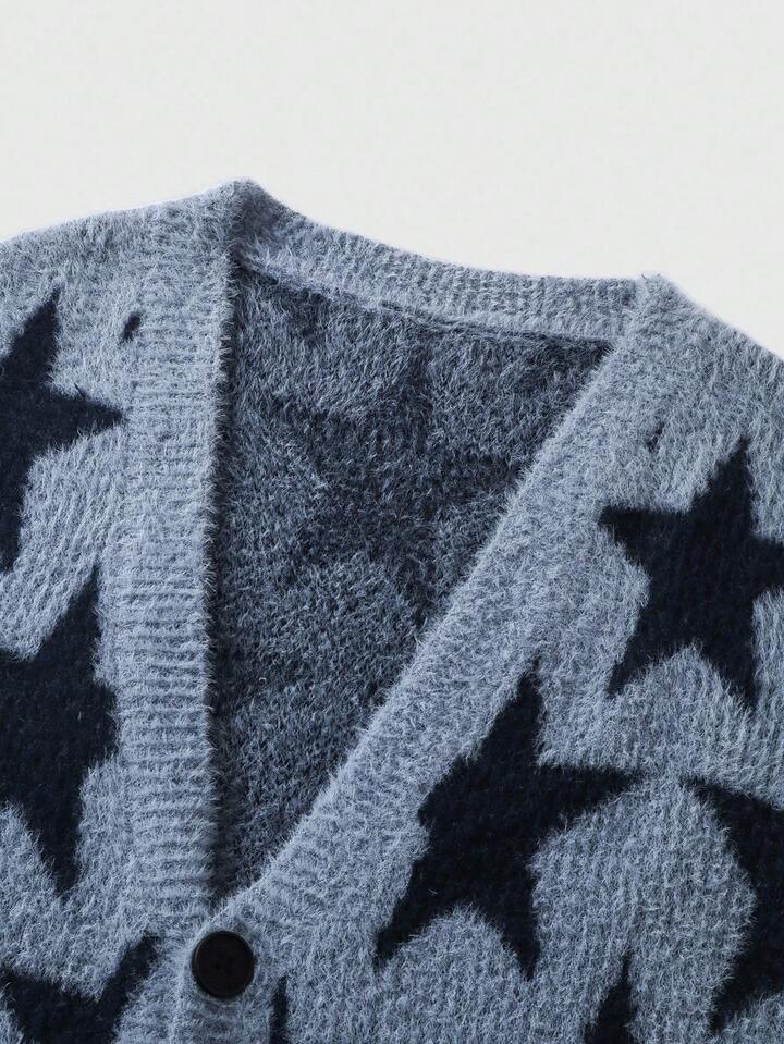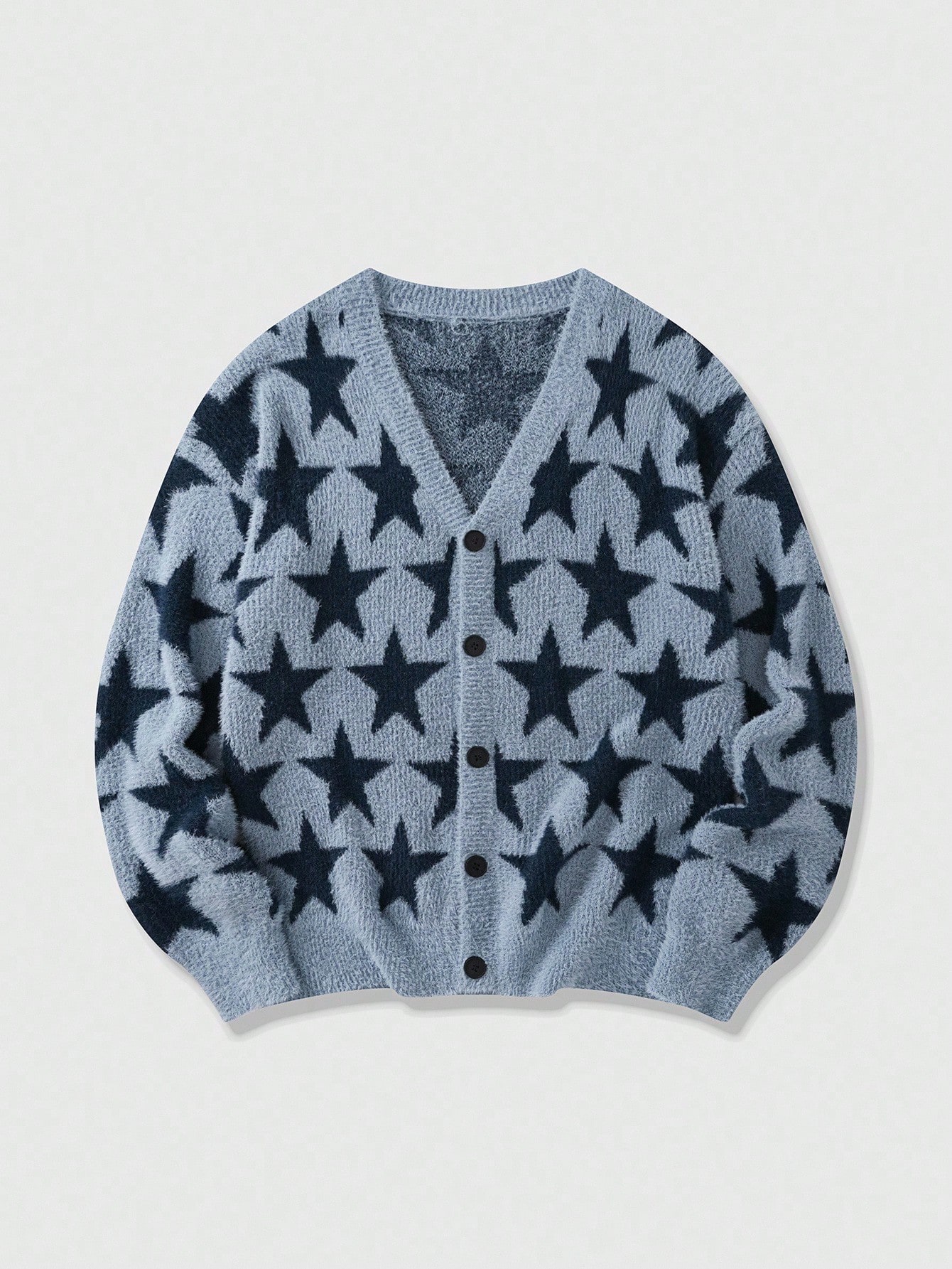 Street Life Cardigan uomo a maniche lunghe con scollo a V, motivo a stelle, lavorazione jacquard, casual, autunno/inverno