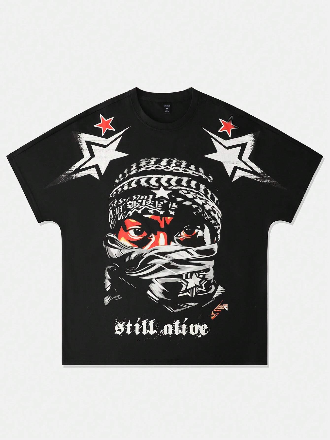 Street Life Maglietta a maniche corte da uomo con stampa grafica, vestibilità ampia stile vintage, look da strada