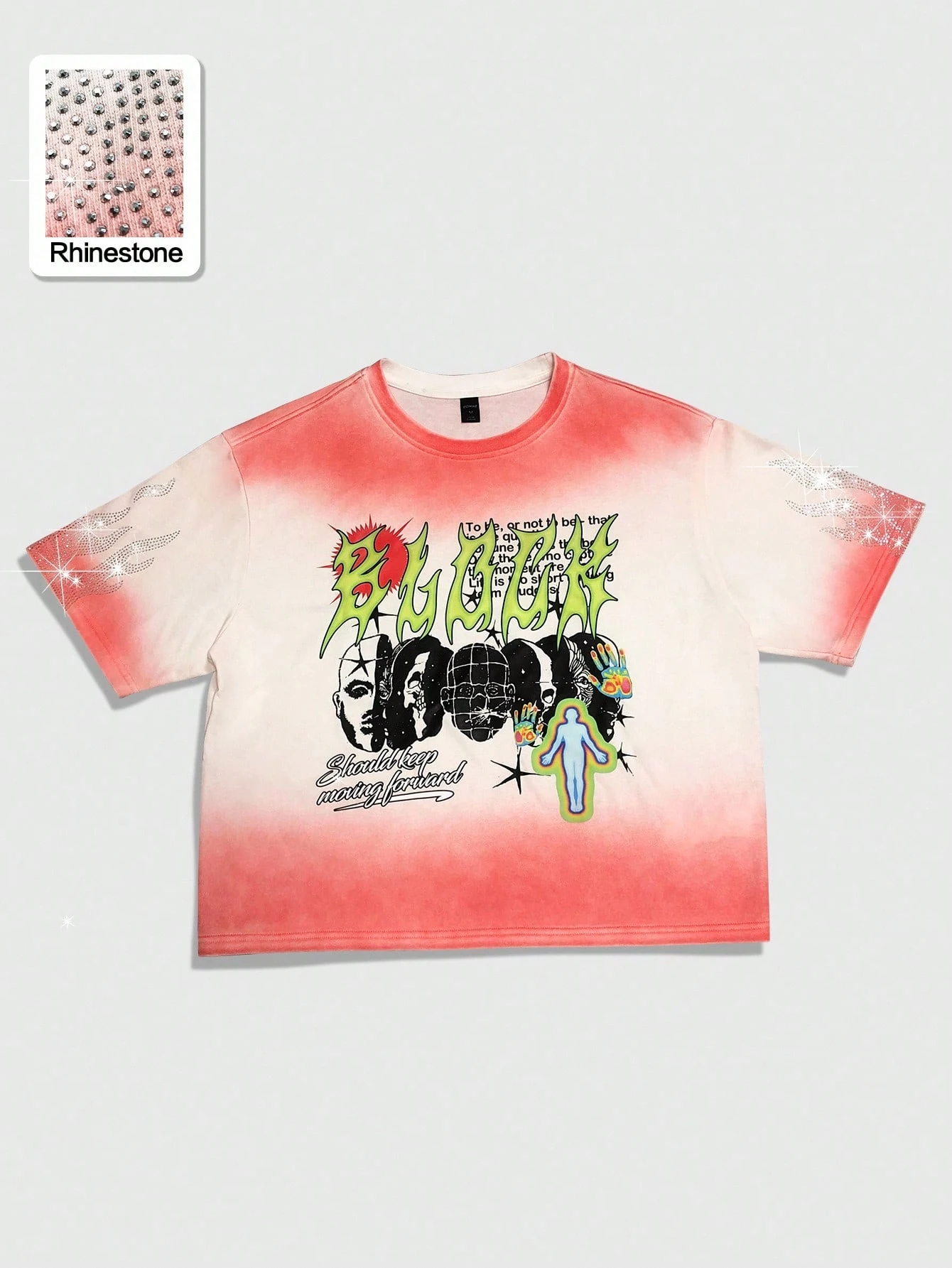 Street Life Maglietta da uomo a maniche corte con stampa lavata, stile oversize e corto