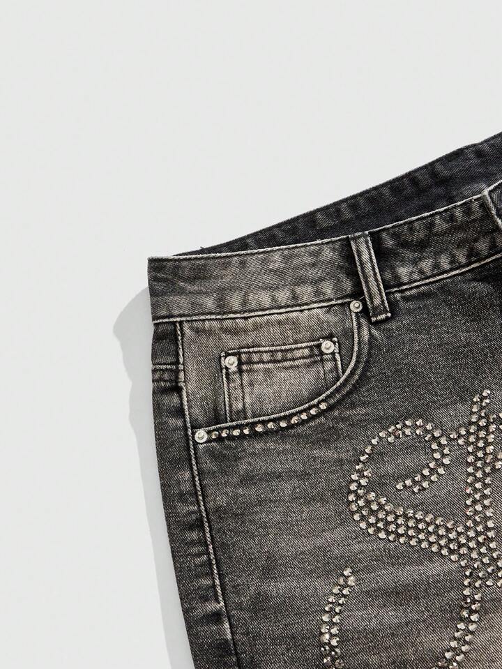 Street Life Pantaloncini di jeans casual alla moda con tasche e decorazioni di strass sfumati
