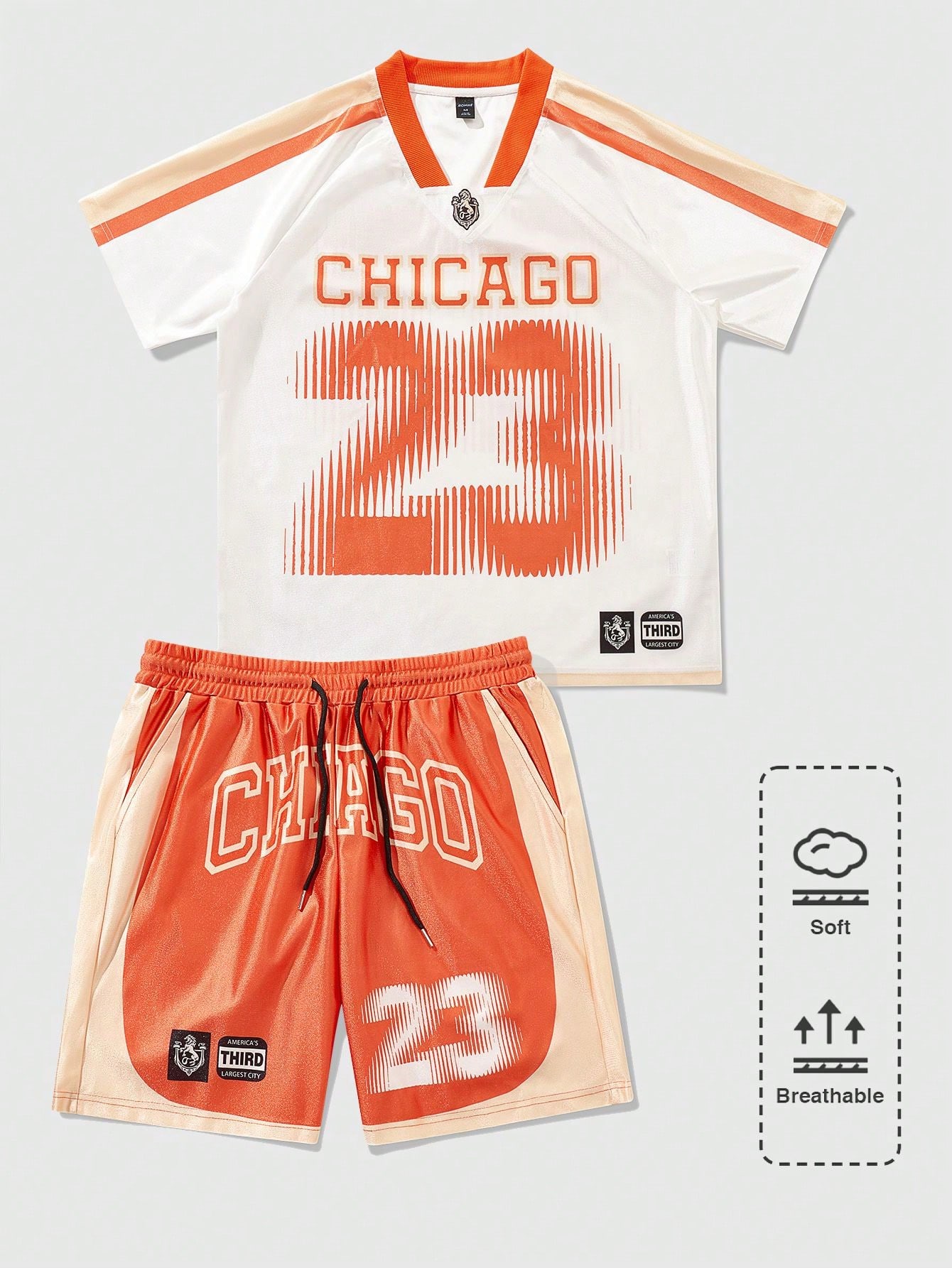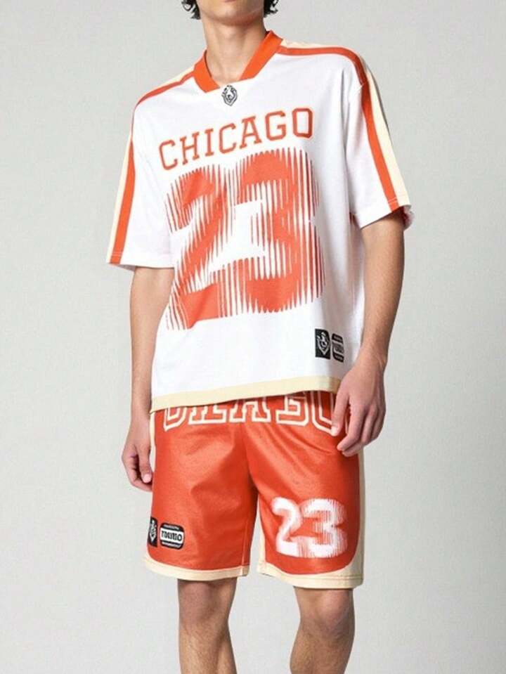 Street Life Maglietta sportiva casual estiva, con stampa di numeri e scritte inglesi, vestibilità ampia da uomo, stile cartoni animati americano e giapponese