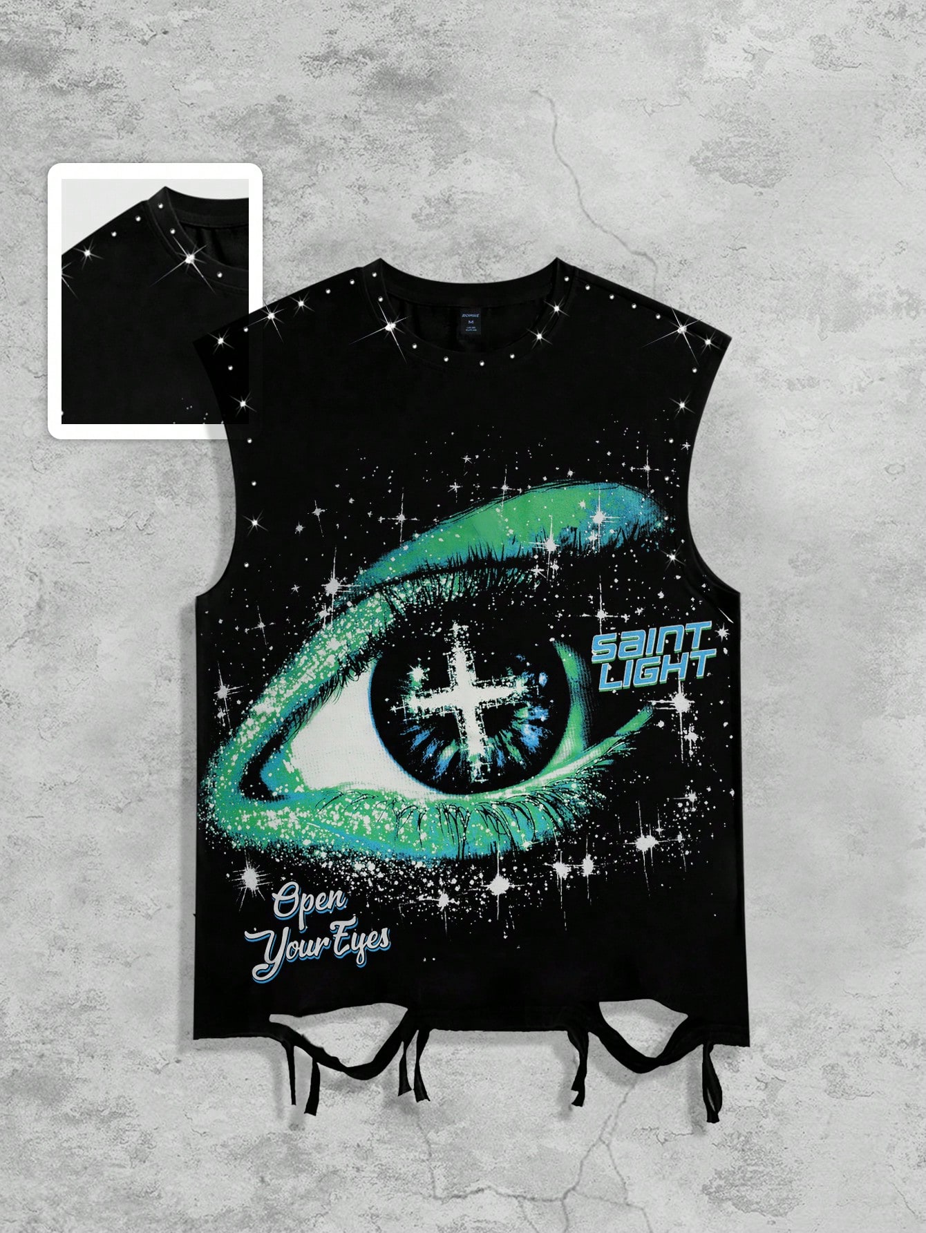 Street Life Canotta da uomo stile punk con stampa grafica da strada, girocollo, senza maniche, con strass e dettagli consumati