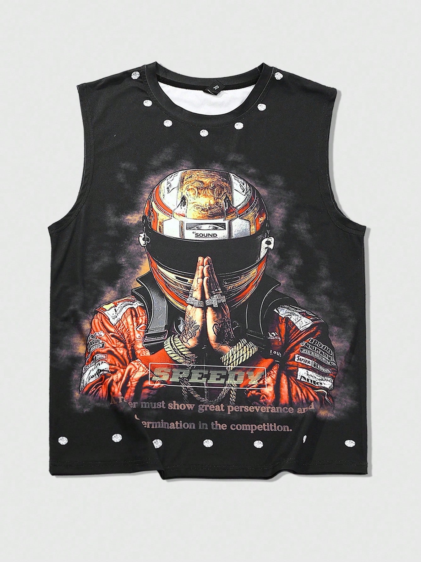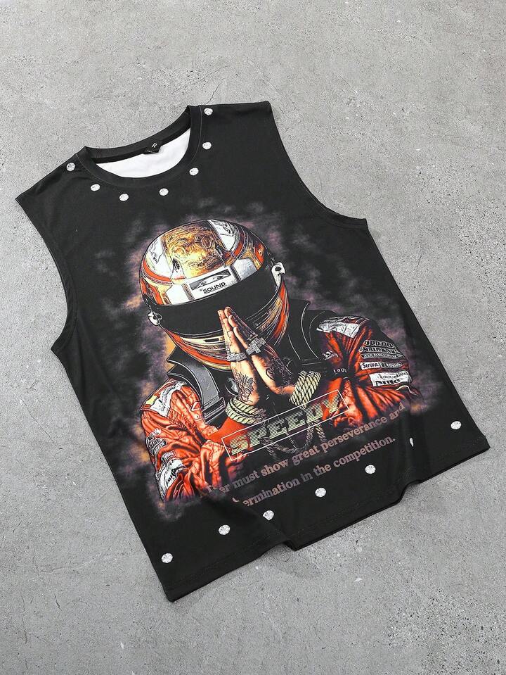Street Life Gilet smanicato nero da uomo con motivo a rivetti, stile da corsa, moda da strada, stile anni 2000