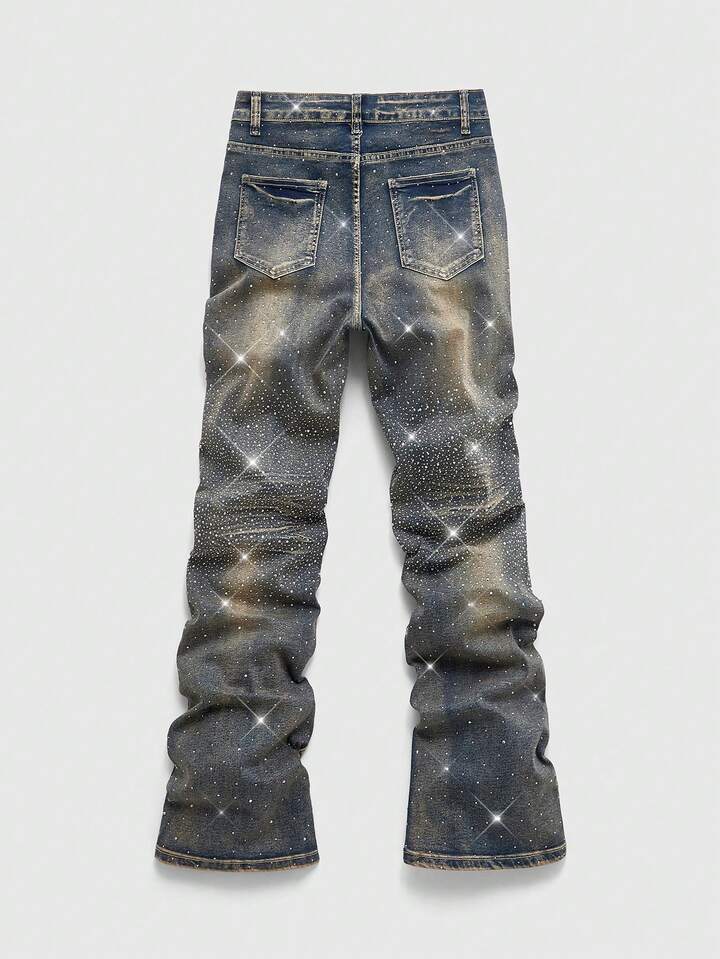 Street Life Jeans a zampa con decorazioni in strass, un must-have per gli uomini di stile