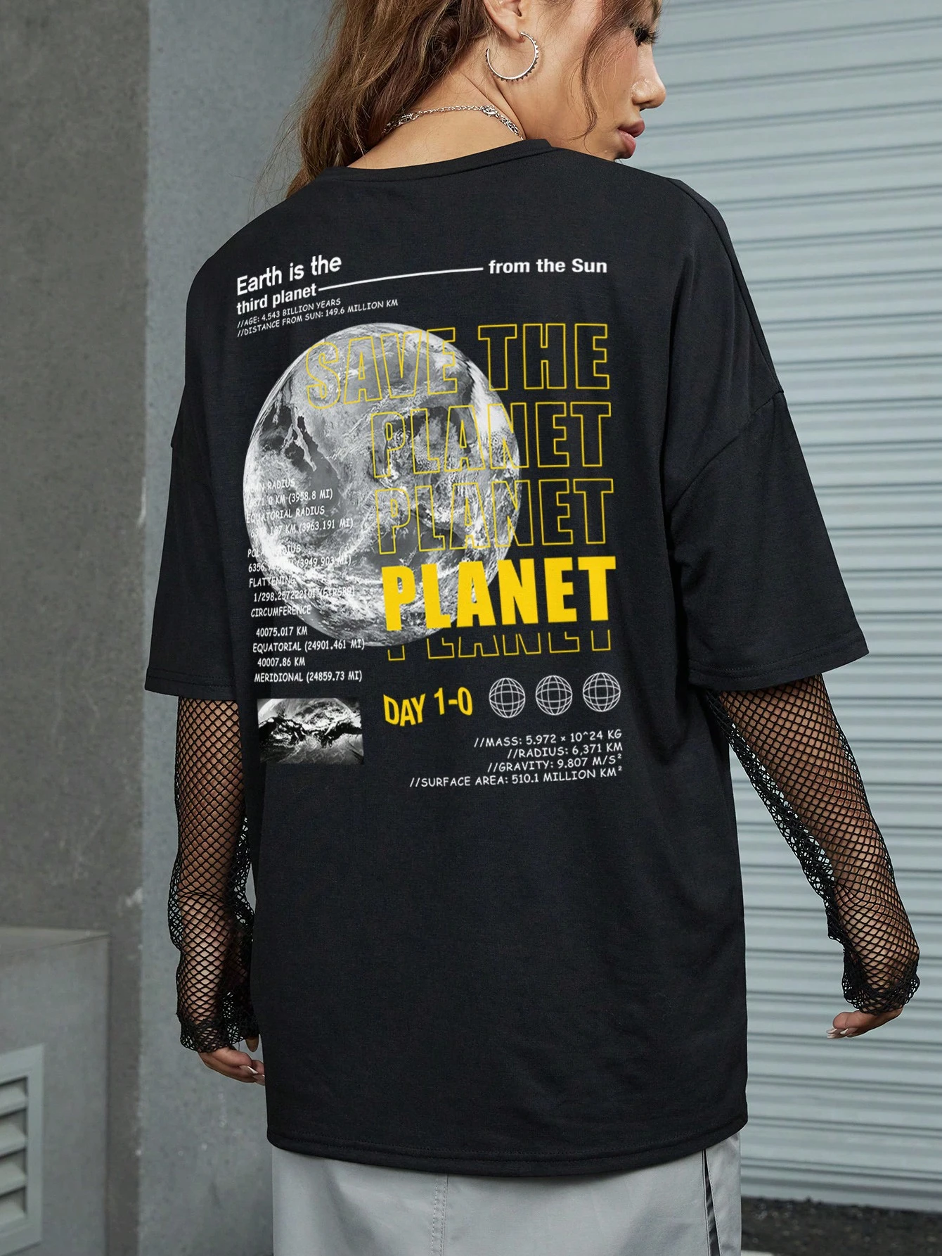 Street Life Maglietta con spalla cadenti con grafica slogan