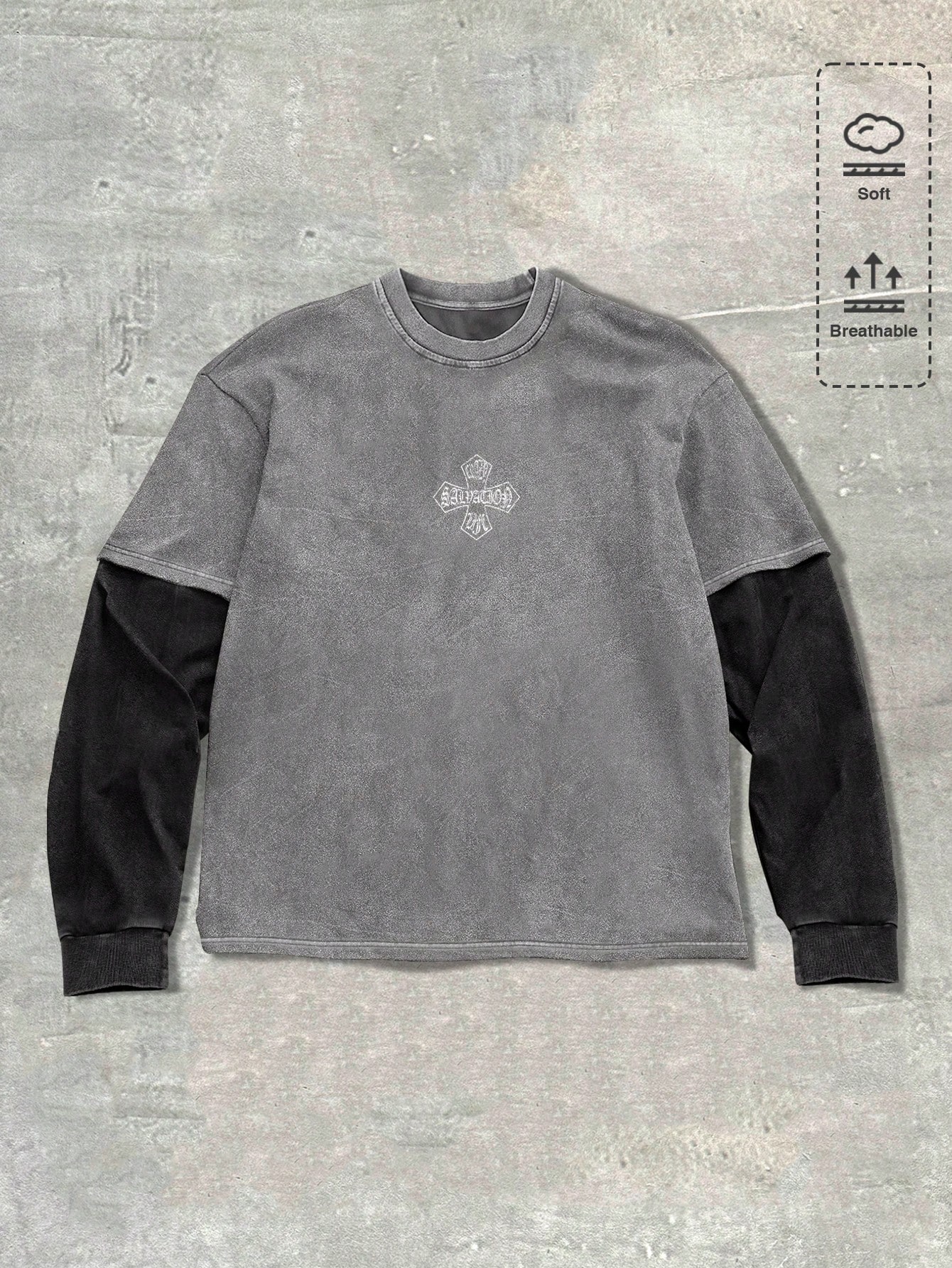 Street Life Maglietta casual da uomo con colori a contrasto e patchwork, autunnale