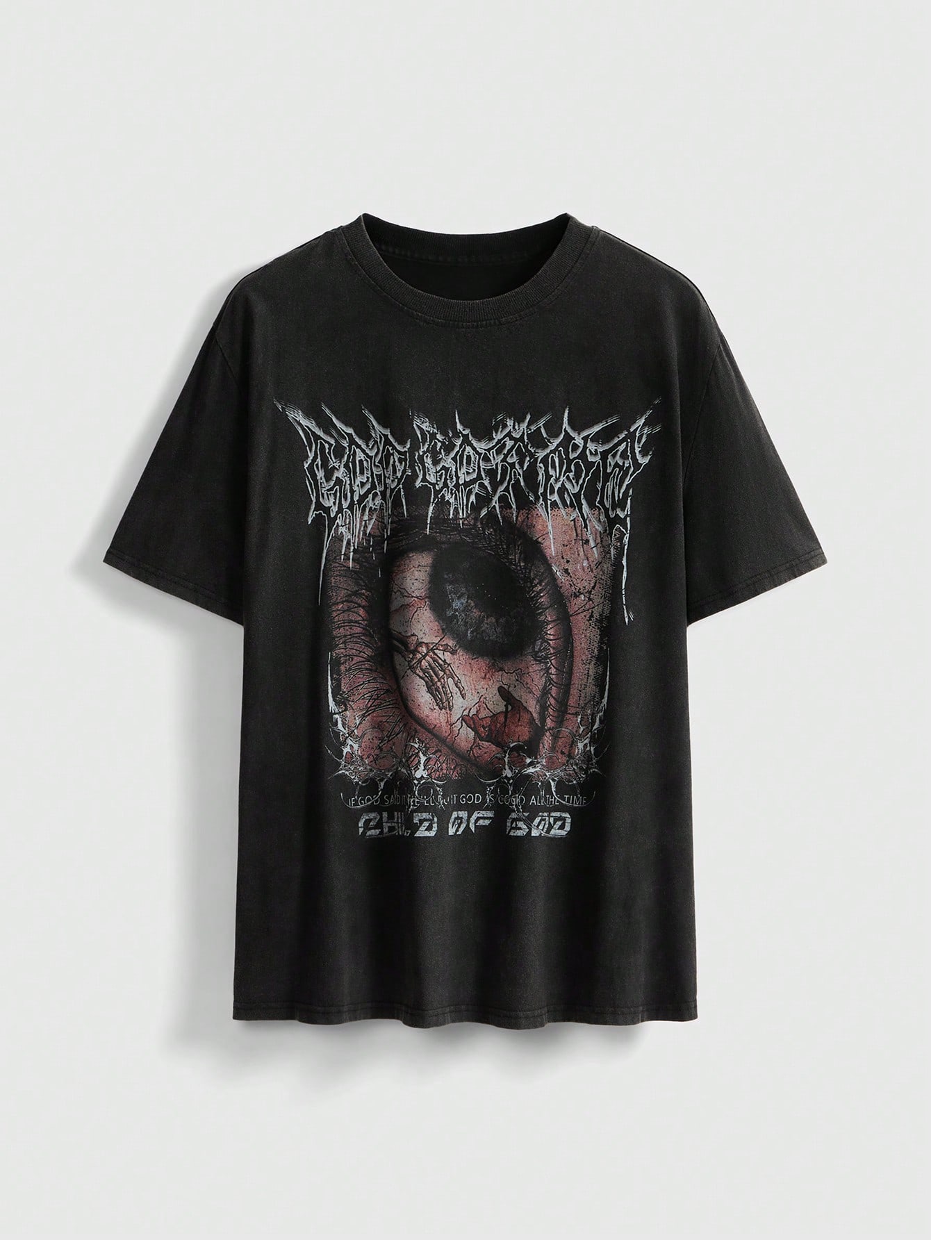 Street Life Maglietta grigia casual da strada con stampa di occhio, spine e fiocco di neve, stile casual da strada, taglie forti