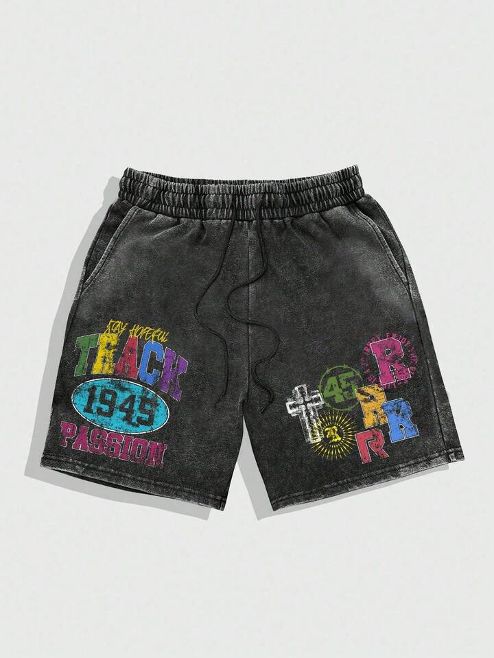Street Life Pantaloncini casual estivi da ragazzo adolescente, lavati, con stampa a lettere