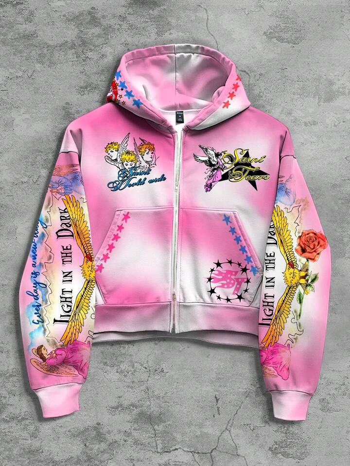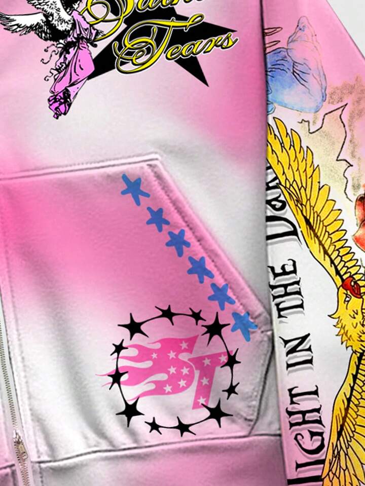 Street Life Giacca con cappuccio con chiusura lampo, stile tie-dye, stampa digitale, per uomo, adatta per primavera/autunno/inverno