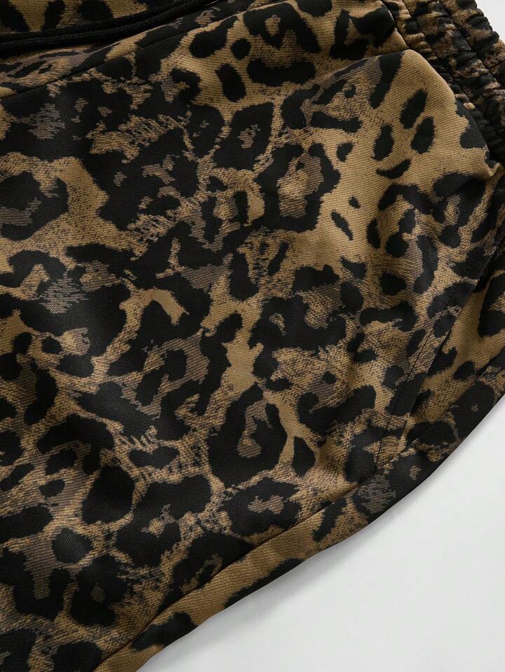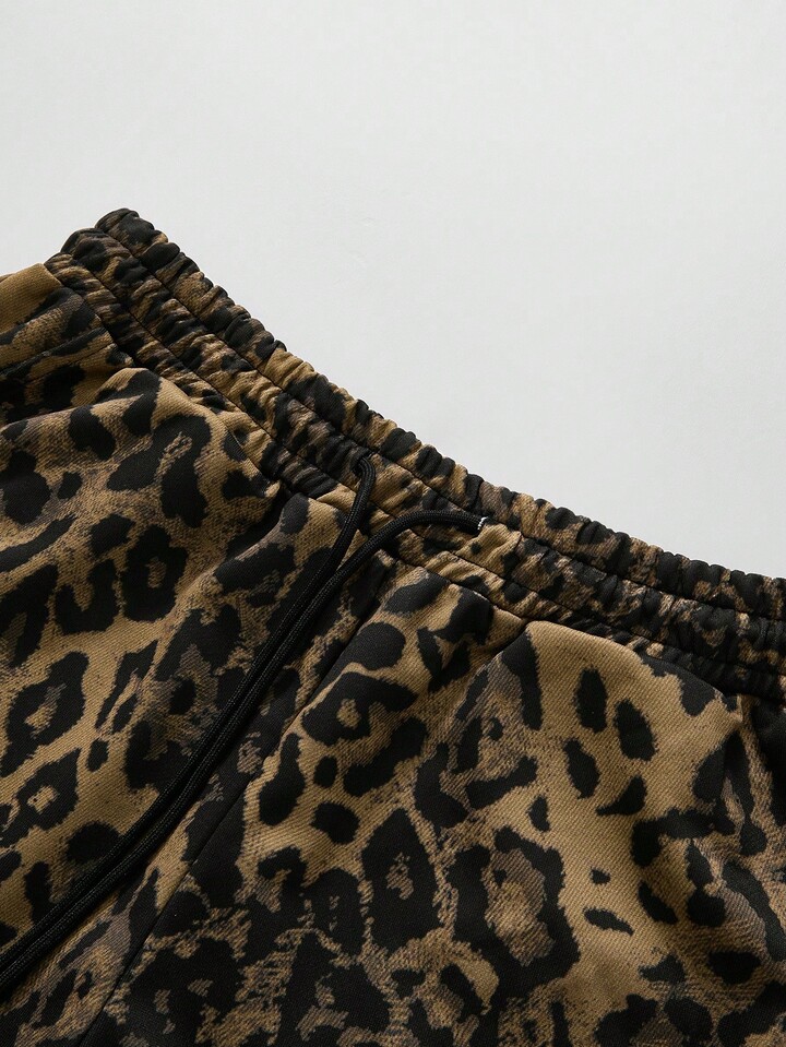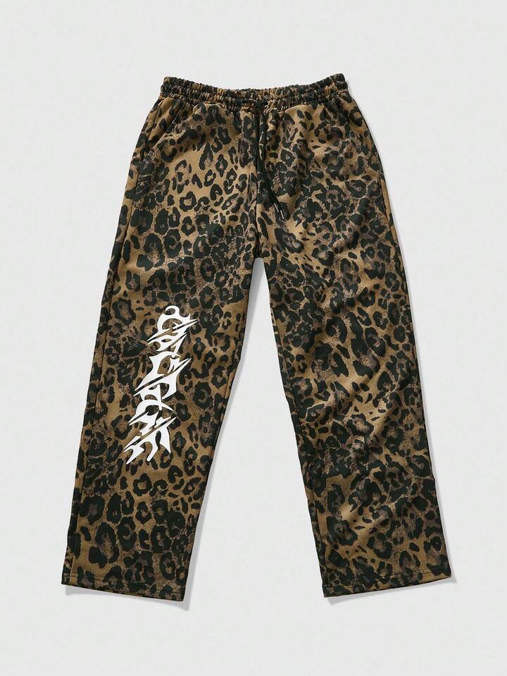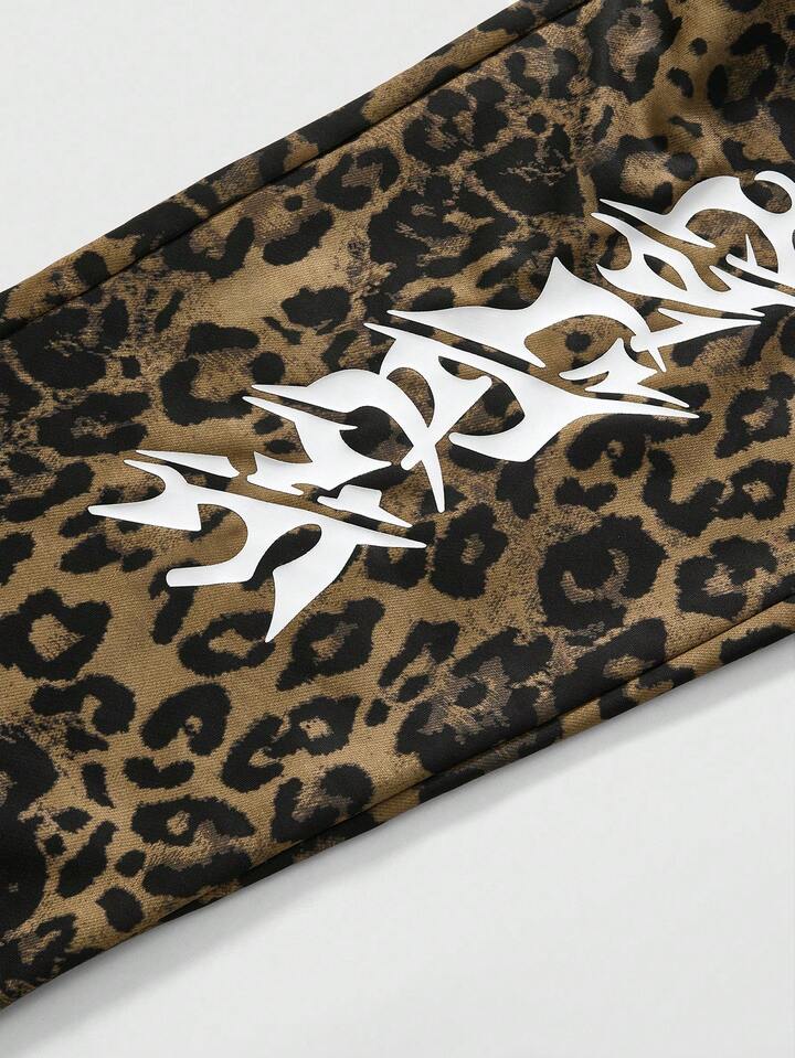 Street Life Pantaloni della tuta con stampa leopardata e grafica inglese, stile americano da strada, unisex