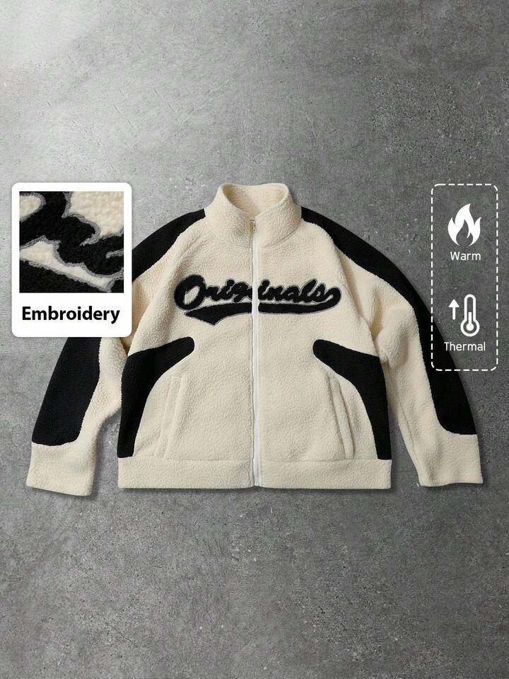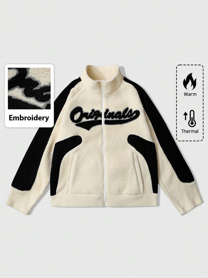 Street Life Giacca unisex stile urban con patchwork e ricamo inglese, autunno/inverno