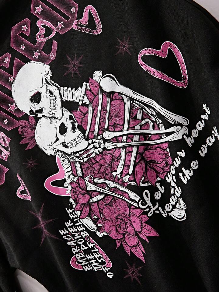 Street Life Felpa con cappuccio e zip davanti con grafica di scheletro e lettera per San Valentino per uomo