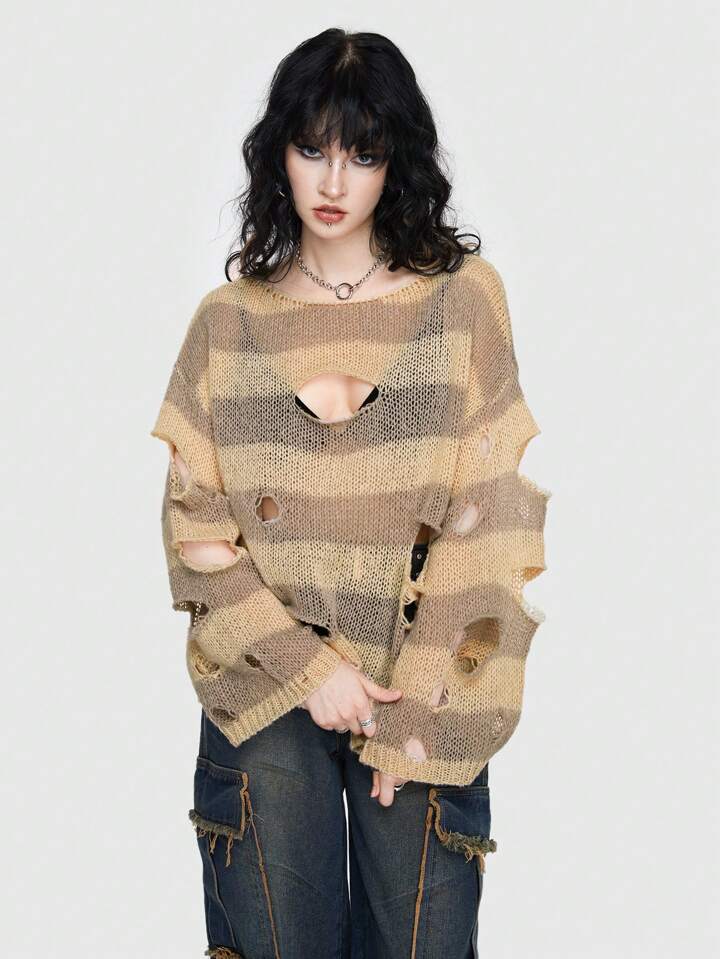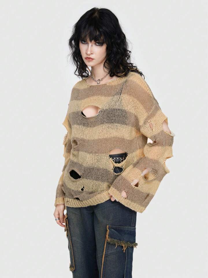 Street Life Maglione A Righe Slavato Da Donna Per Abbigliamento Streetwear