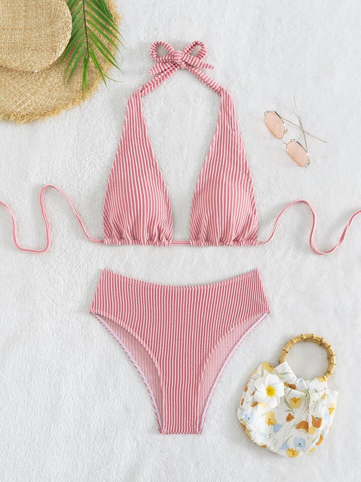 A righe Bikini con collo a halter Set Estivo Spiaggia