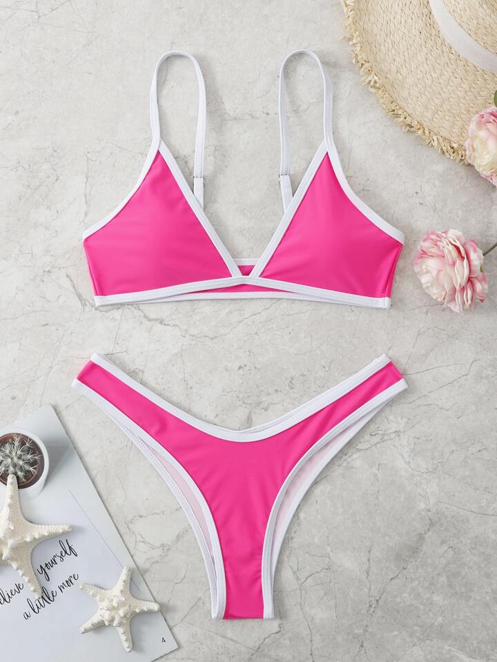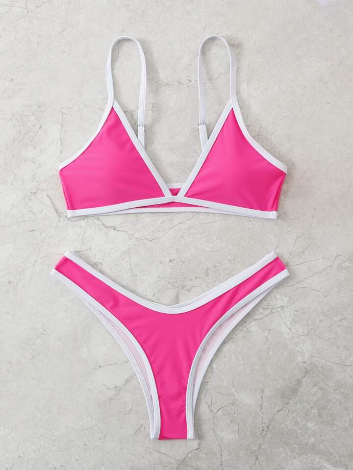 Bikini con taglio alto a contrasto per la spiaggia estiva