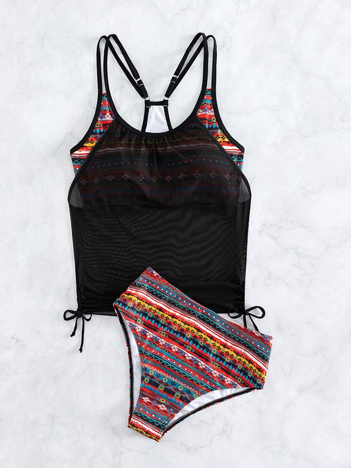Set di bikini con laccetti laterali e stampa geometrica per l estate in spiaggia