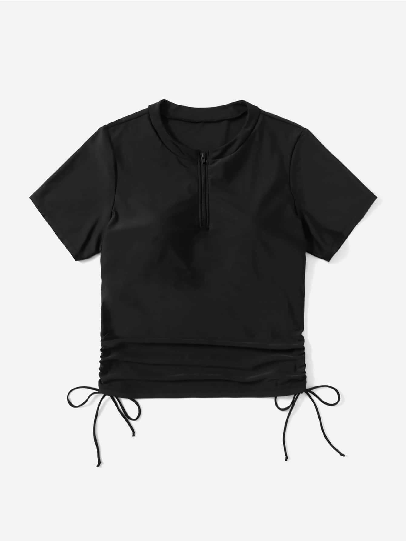 Taglie Forti Top tankini maniche corte coulisse laterale un quarto con zip frontale collo alto