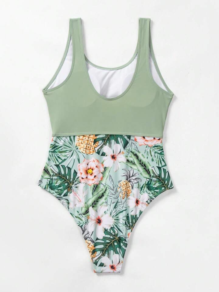 Costume intero con stampa tropicale cut out