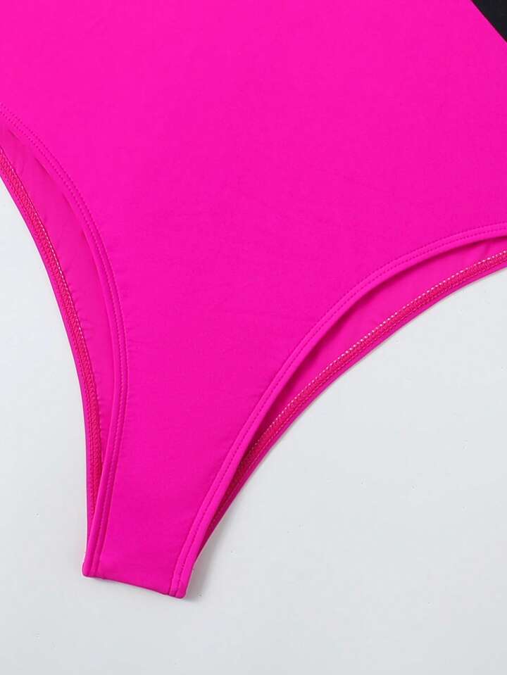 Costume da bagno intero estivo con taglio e blocchi di colori fluo