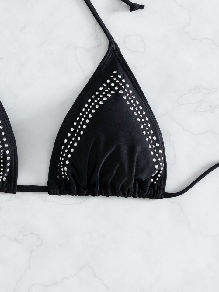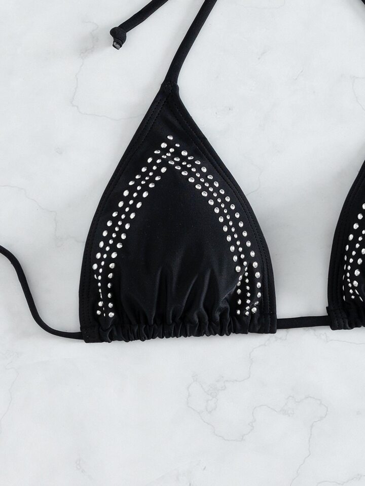 Top bikini triangolare con dettagli in strass e collo a spalline per l'estate