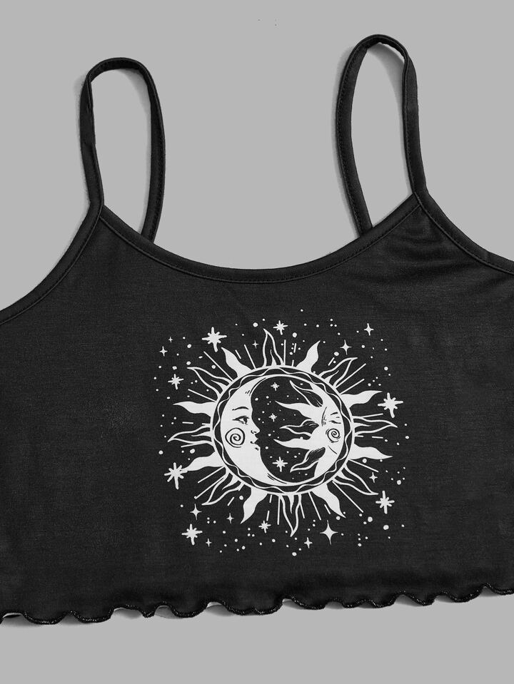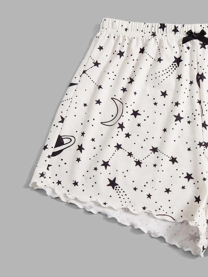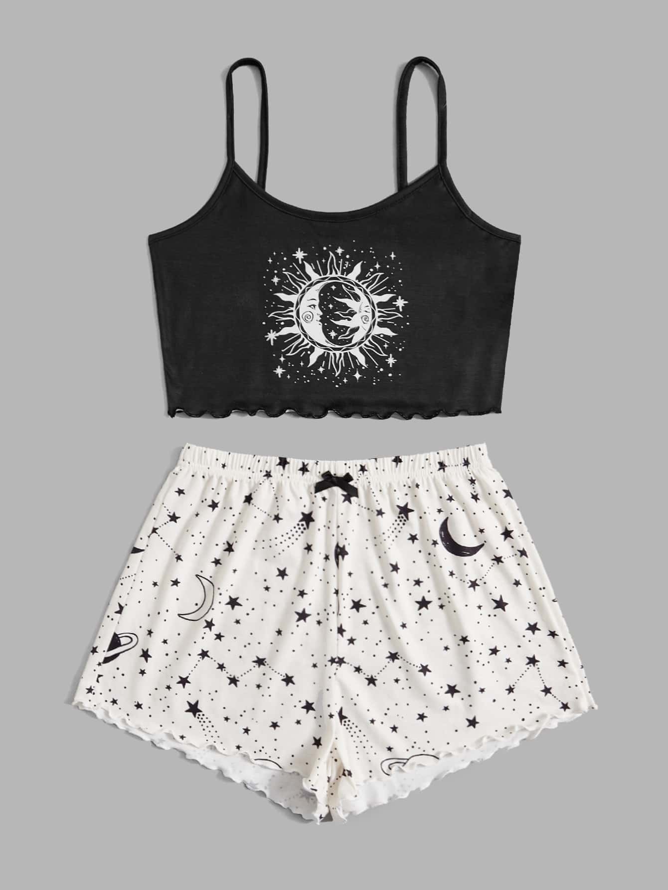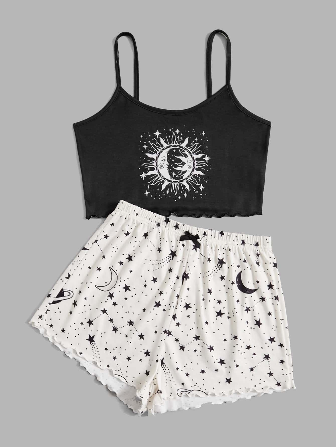 Set pigiama con grafica luna e sole orlo lattuga