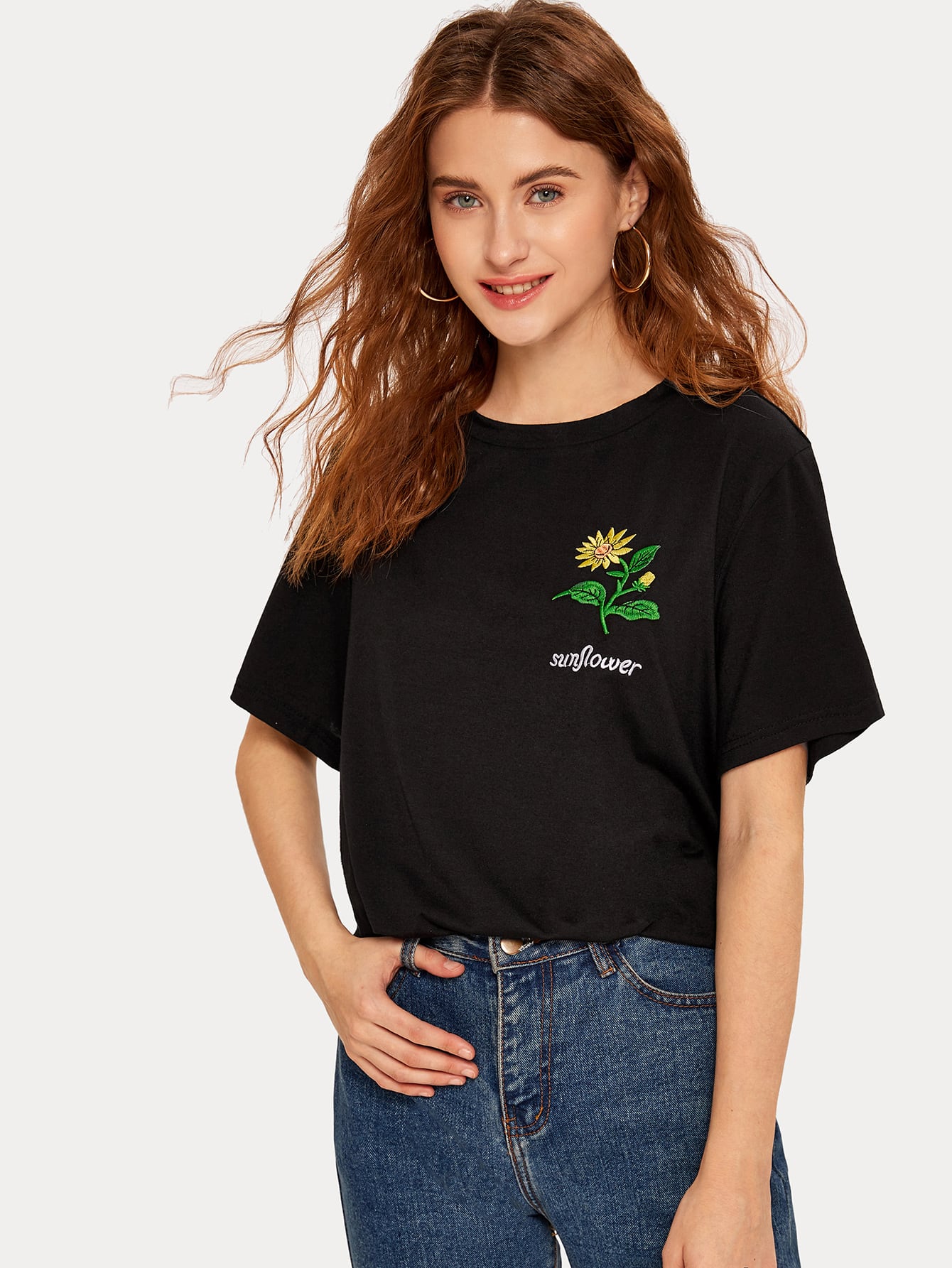 Maglietta con ricmao lettera e girasole