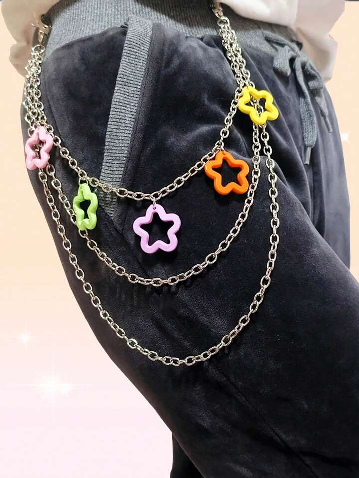 Sweetness Donna Y2K 1 pezzo Pantaloni lungo con decorazione floreale con catena