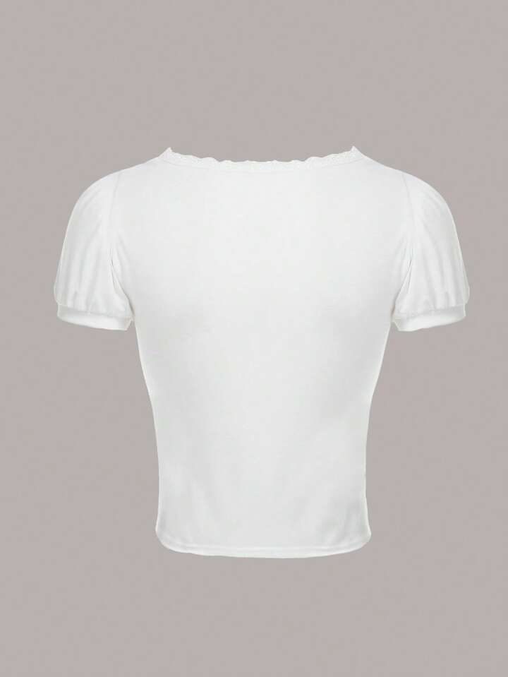 Sweetness Maglietta fiocco frontale con volant con manica a sbuffo