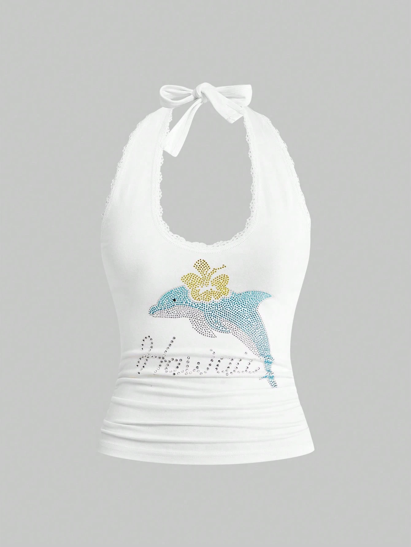 Sweetness Canotta casual e rilassata da donna con grafica di delfino e decorazioni in strass, adatta per vacanze in isola e uso quotidiano