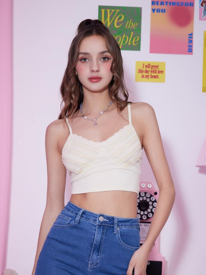 Sweetness Bretelle sottile corte pizzo a contrasto