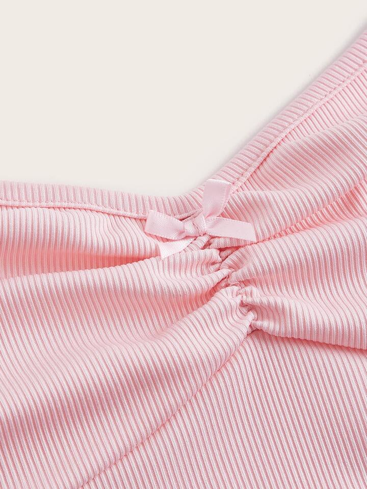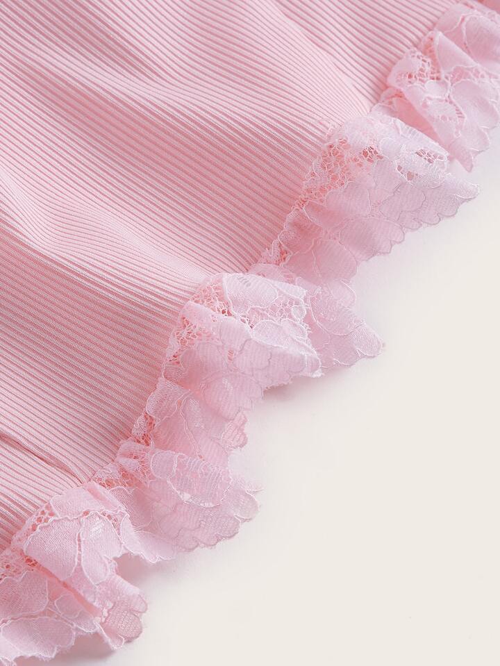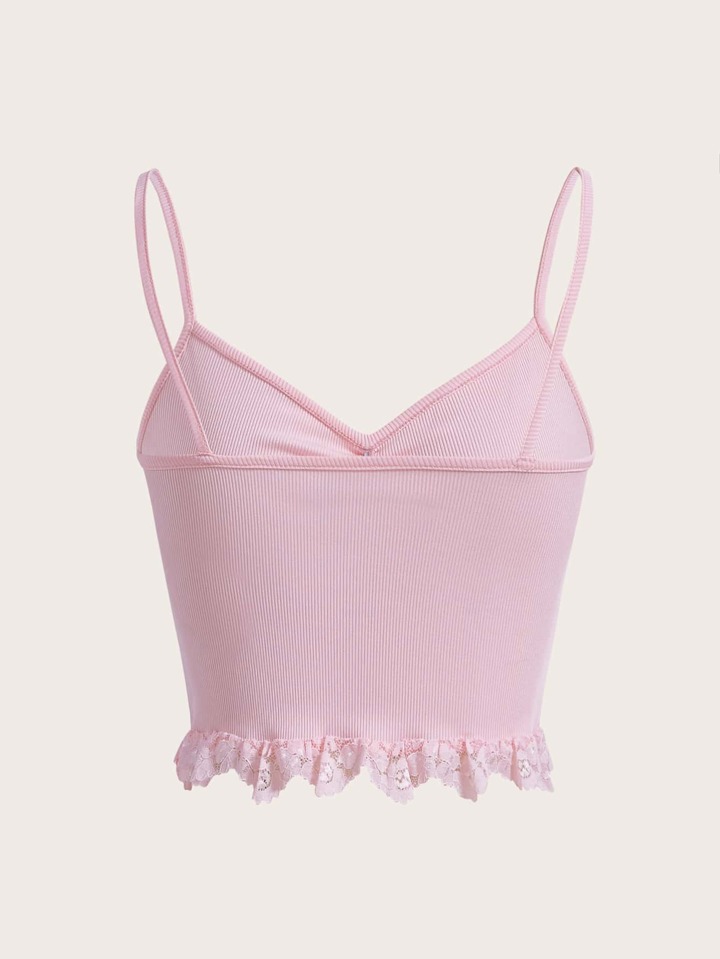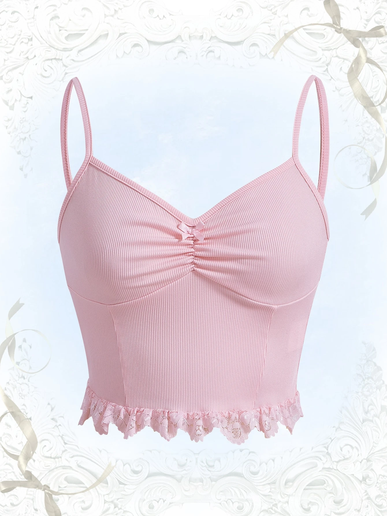 Sweetness Top con bretelle sottile pizzo a contrasto plissettato