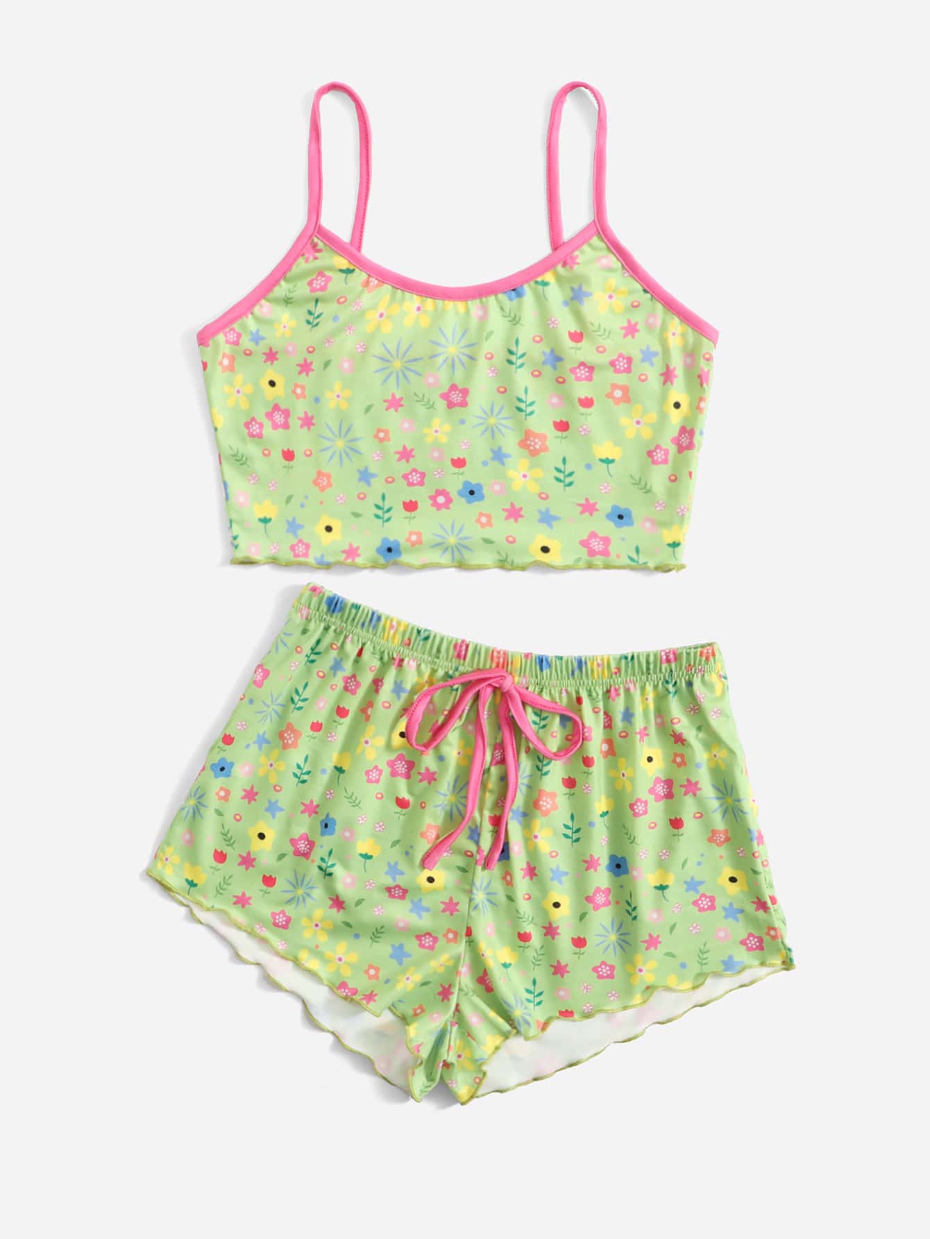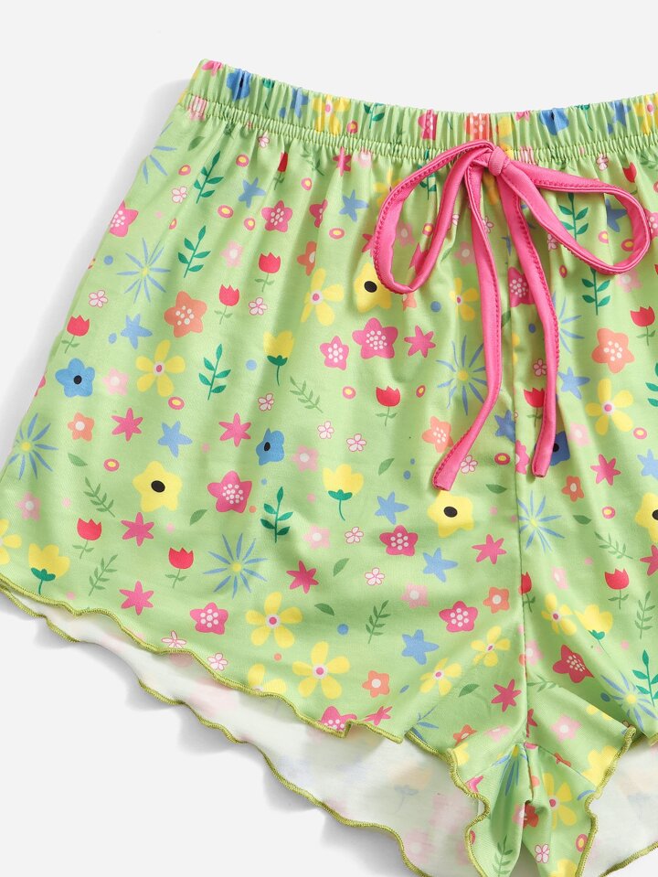 Sweetness Set pigiama con stampa floreale orlo lattuga