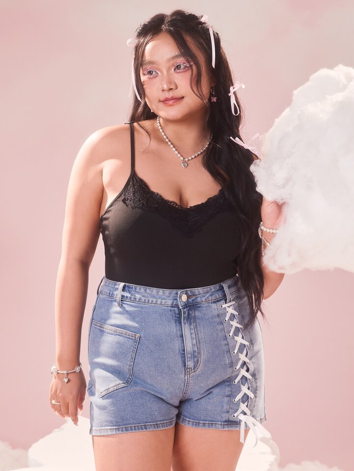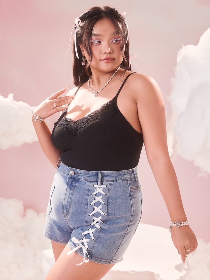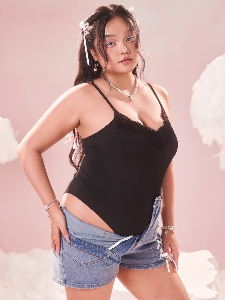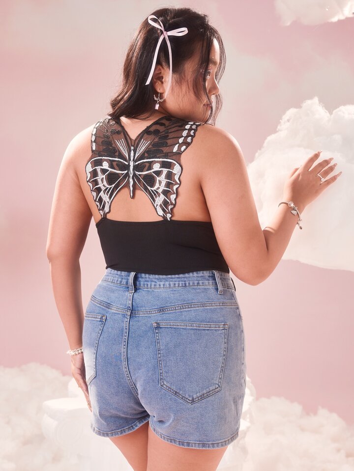 Sweetness Taglie Forti Body con bretelle sottile con ricamo farfalla inserto in rete