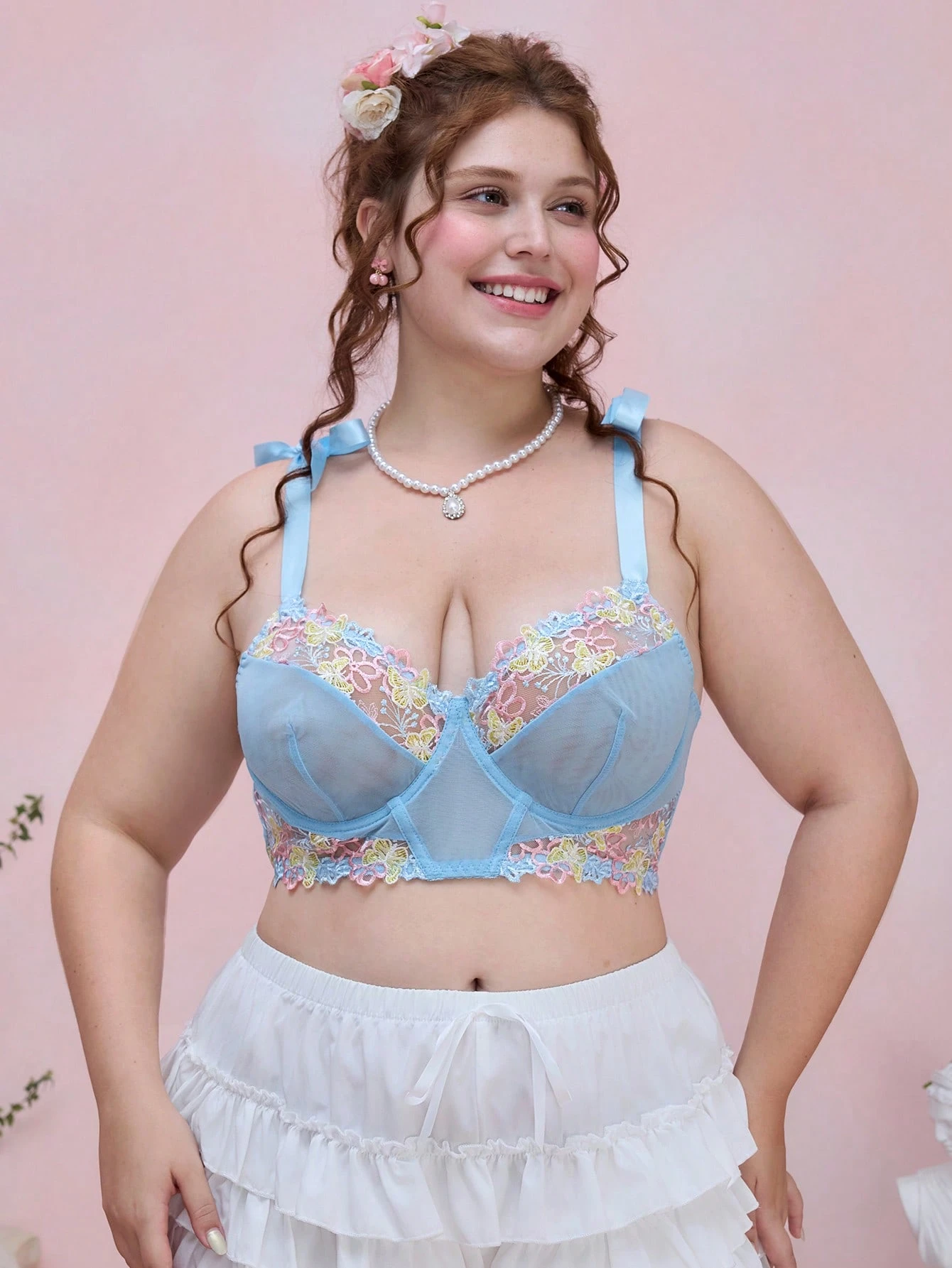 Sweetness Reggiseno in pizzo con ricamo floreale, con stecca in acciaio e allacciatura, di taglia curvy