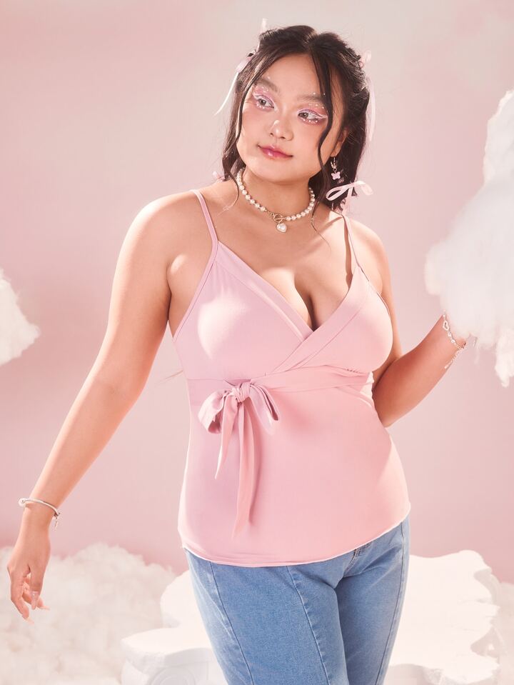 Sweetness Taglie Forti Top con bretelle sottile monocolore nodo laterale