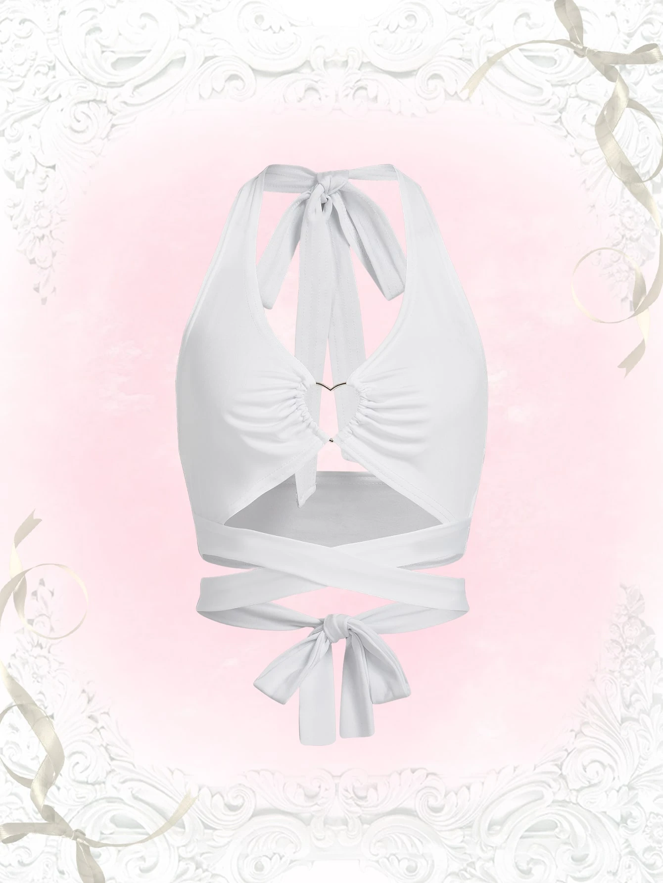Sweetness Top halter monocolore incrociato con nodo dietro