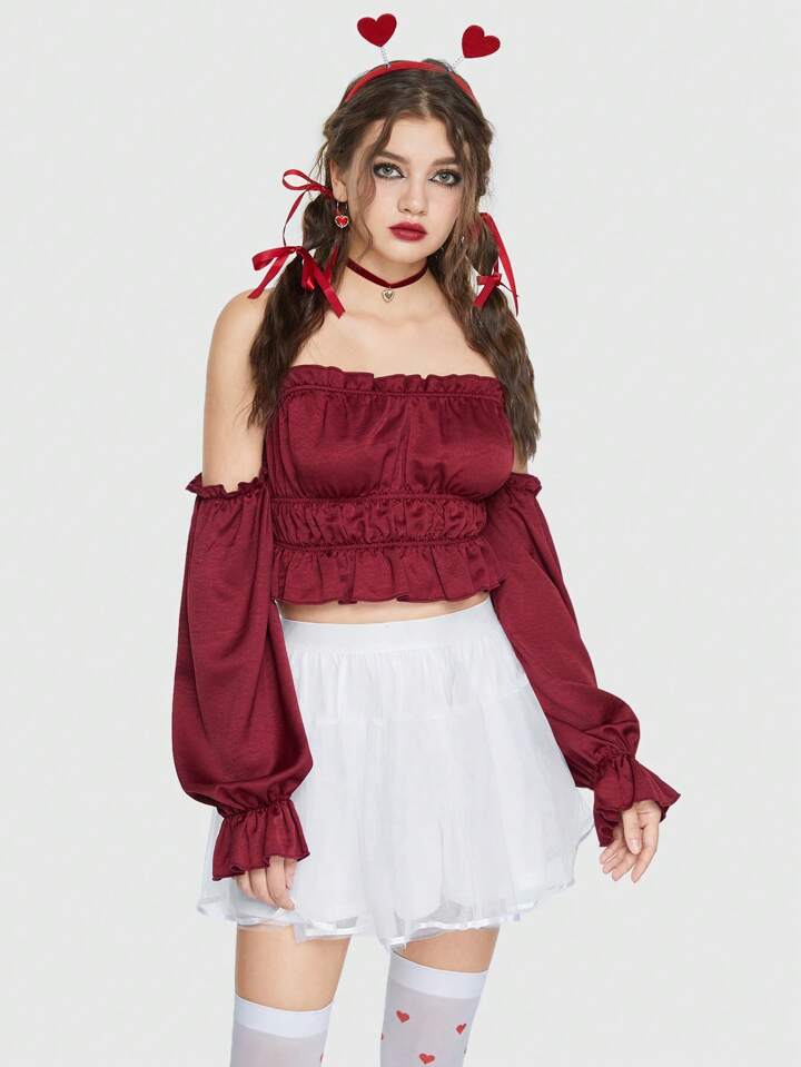 Sweetness Camicetta corta monocolore con spalle scoperte con volant
