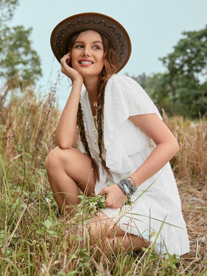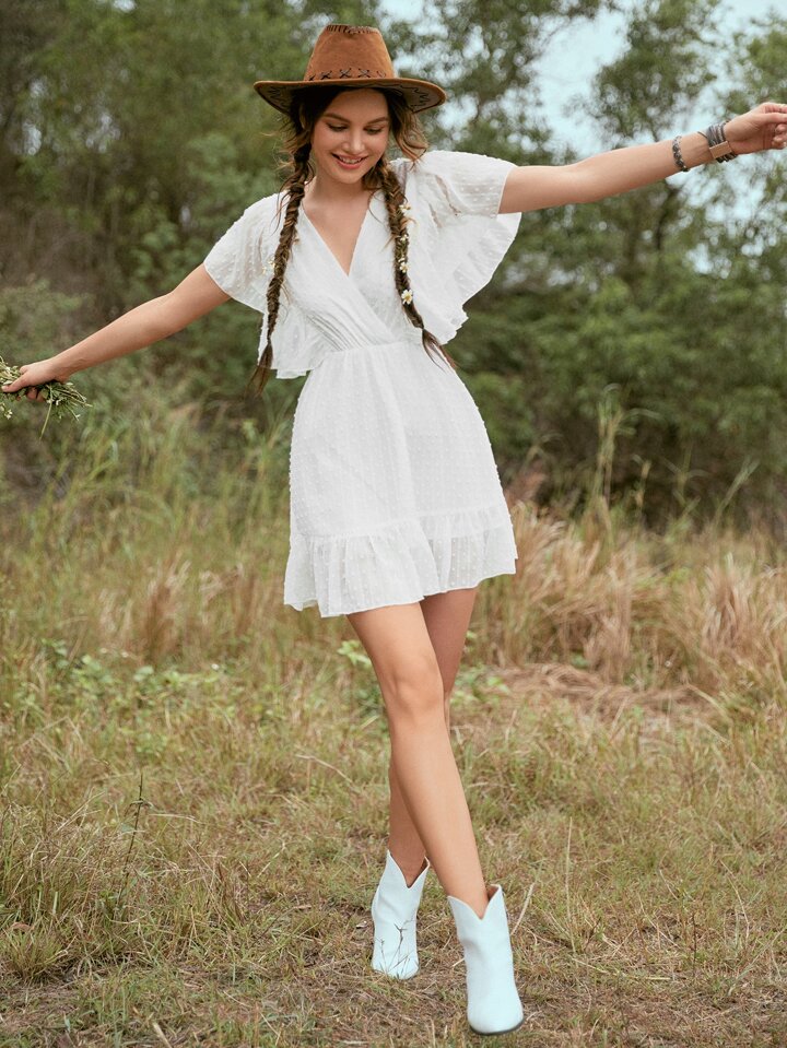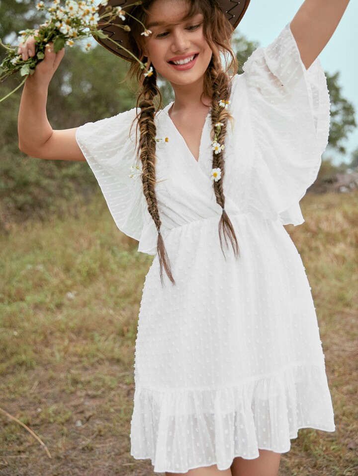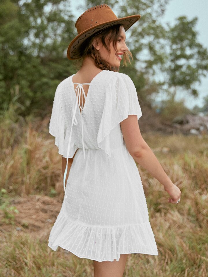 Abito a-line con manica a farfalla con collo incrociato con mussola svizzera
