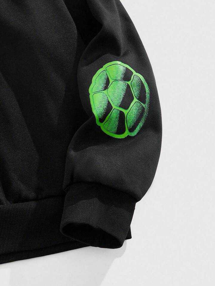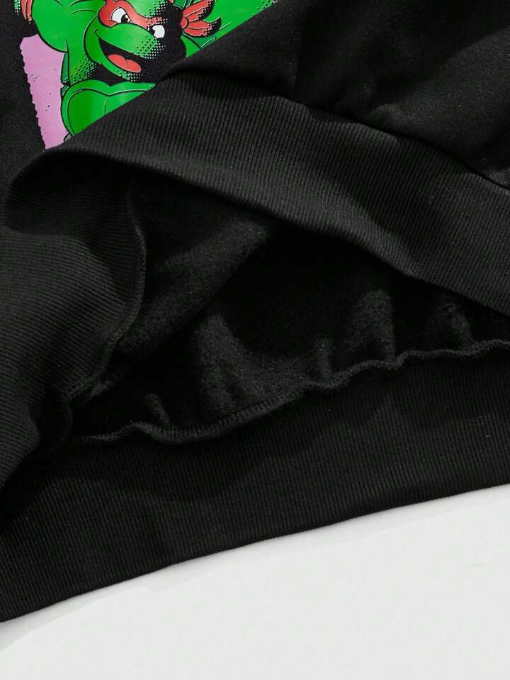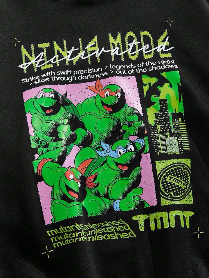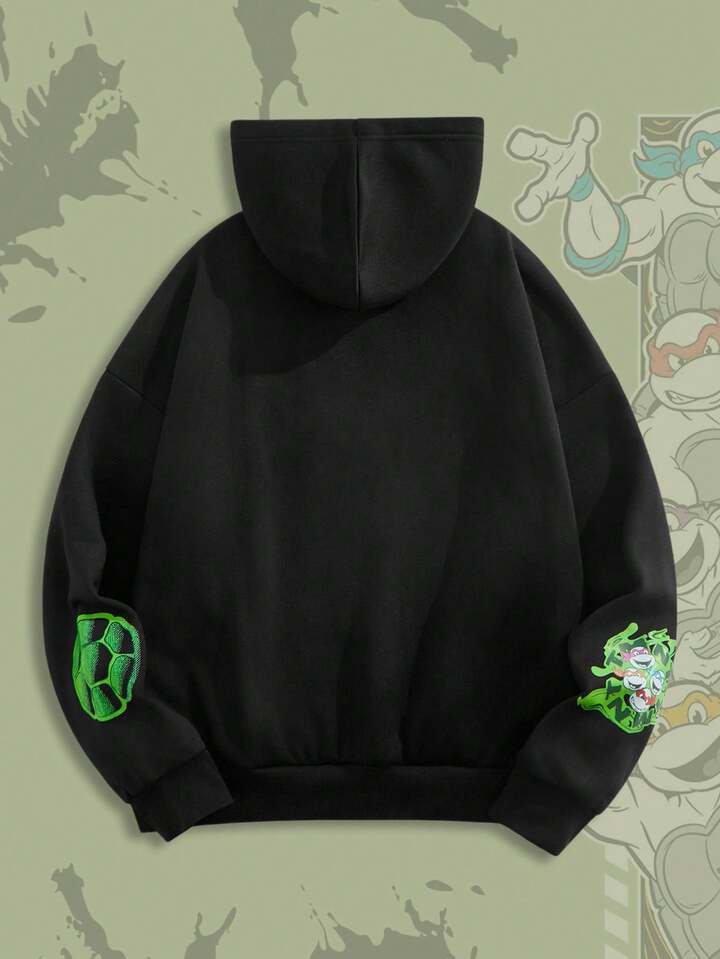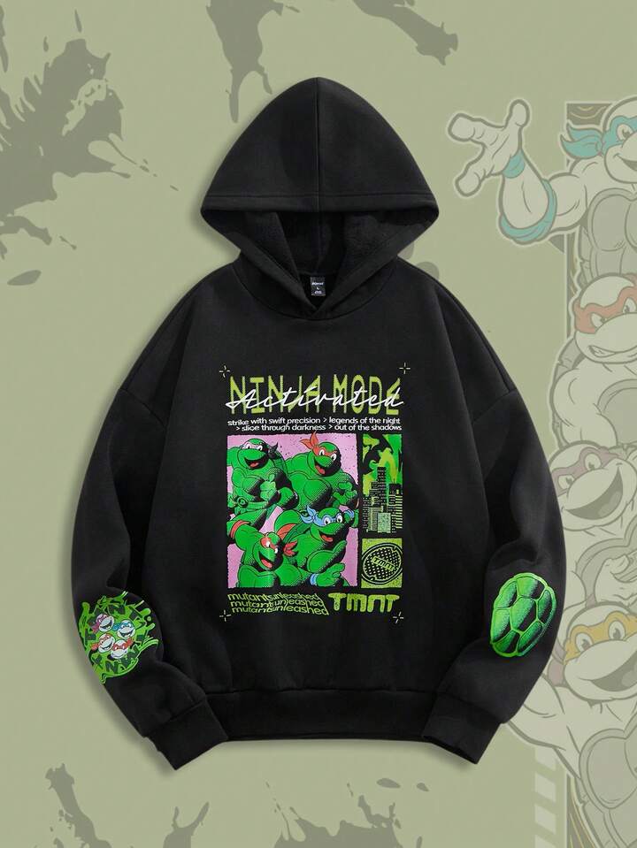 TEENAGE MUTANT NINJA TURTLES X ROMWE Felpa con cappuccio oversize in pile con stampa di tartaruga e slogan casual da uomo, autunno/inverno