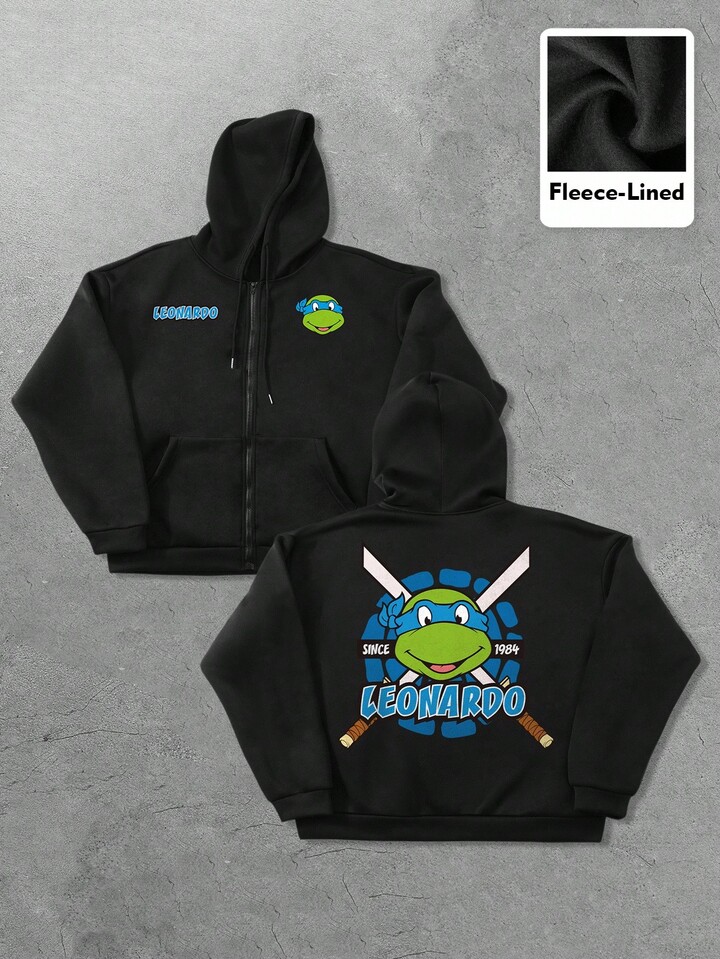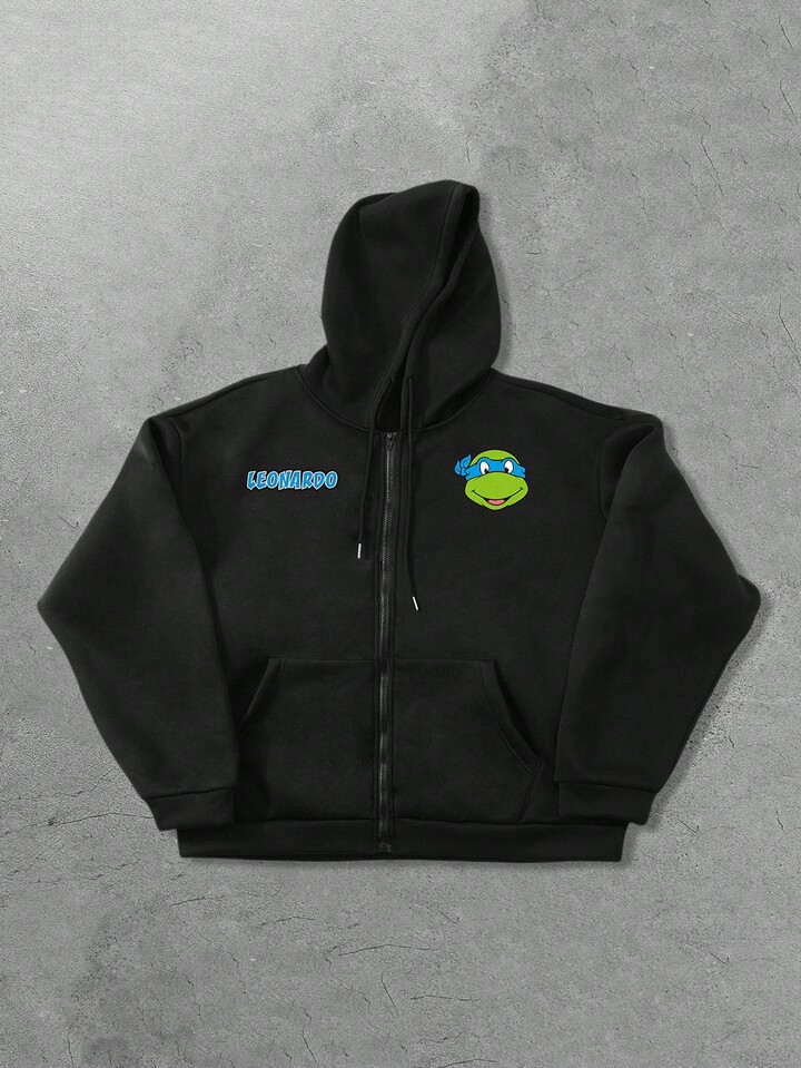TEENAGE MUTANT NINJA TURTLES X ROMWE Felpa con cappuccio casual da uomo con stampa di lettere e tartarughe, autunnale