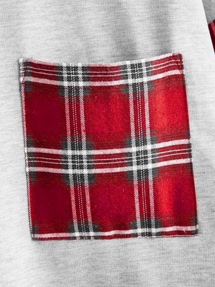 Felpa con cappuccio e coulisse con tasca e pannello a quadri